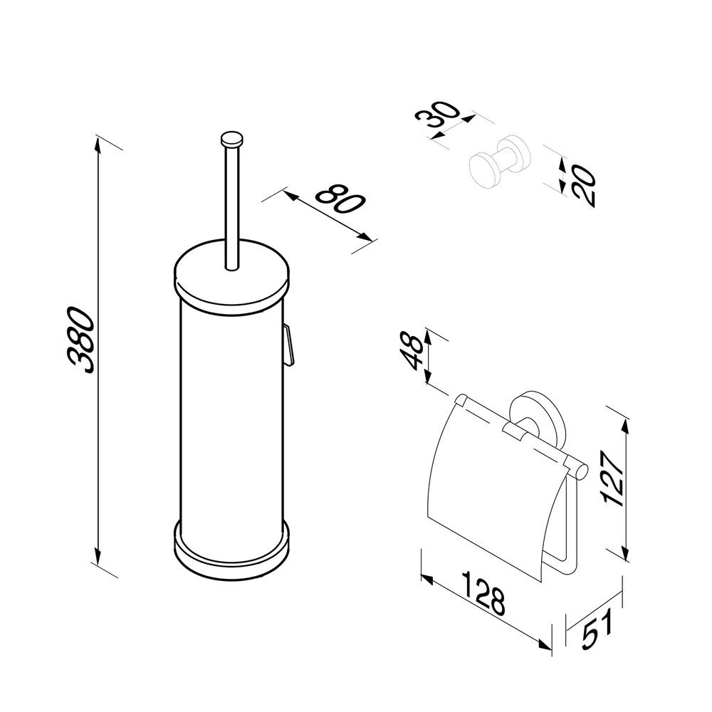 - Set bevat toiletborstel met houder, toiletrolhouder met klep en handdoekhaak