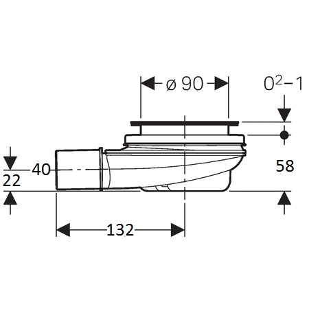 Geberit Setaplano Sifon voor bad/douchebak B11.5xL16.3cm 90cm