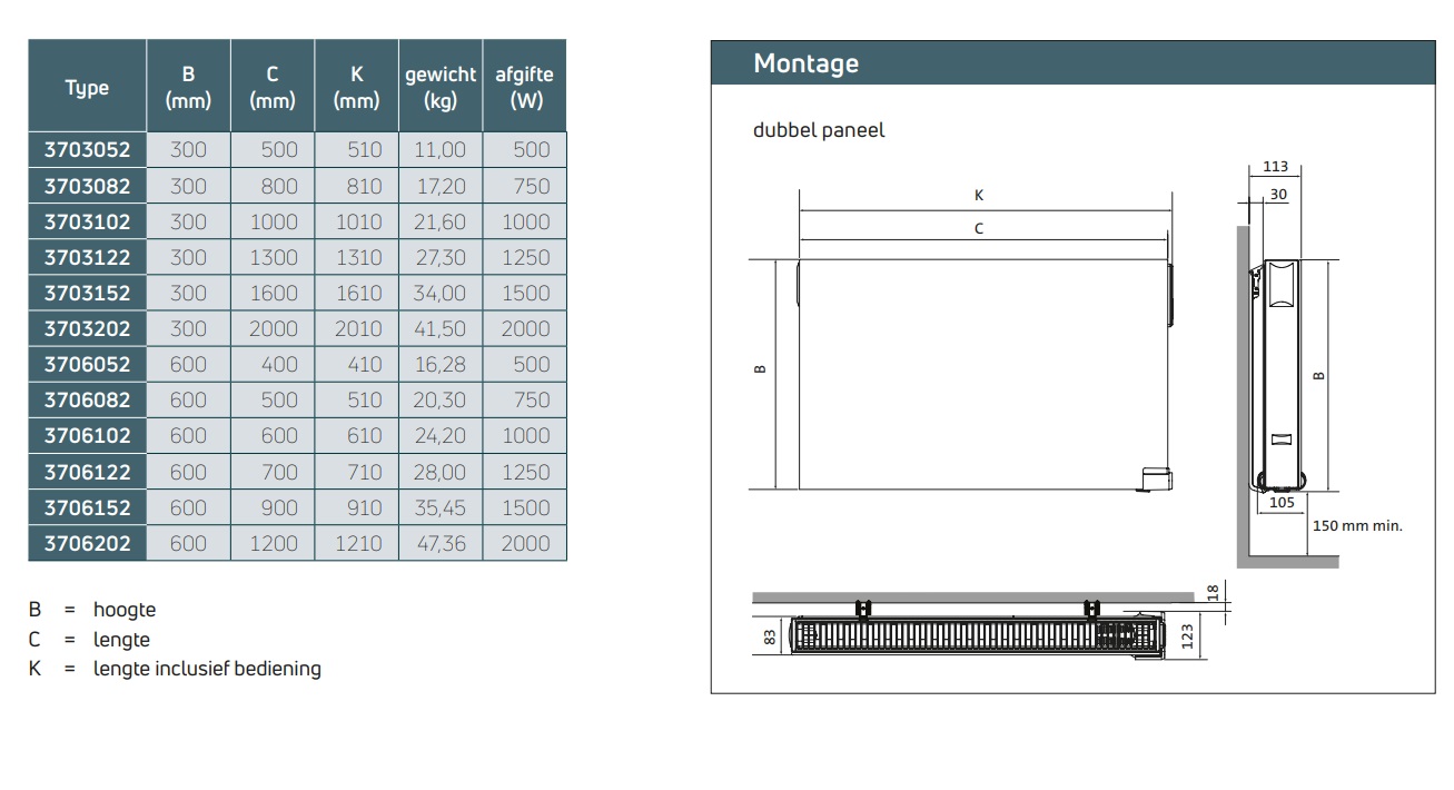 | Installatie | Elektrische radiator |