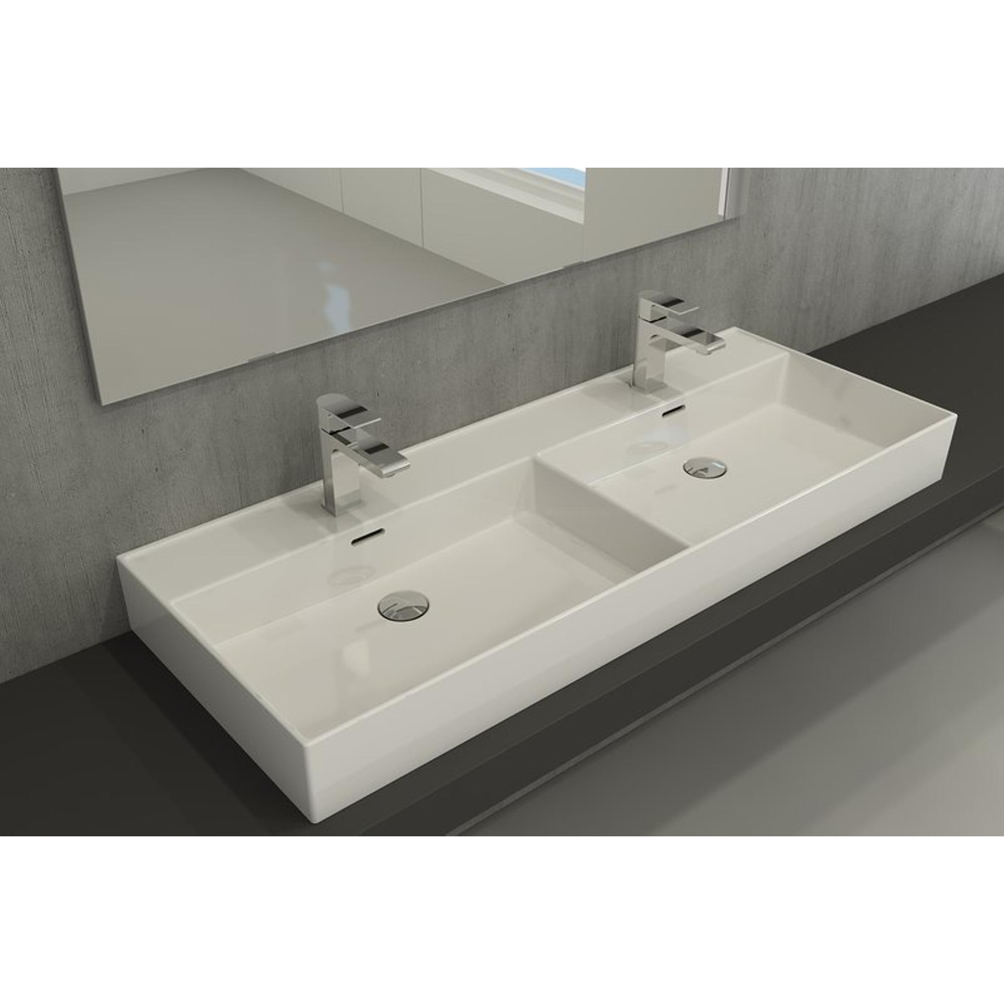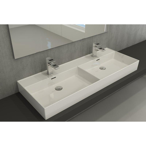 Saniclass Legend Meubelwastafel - 120x47x13cm - overloop - 2 wasbakken - links rechts 2 kraangaten - keramiek - wit