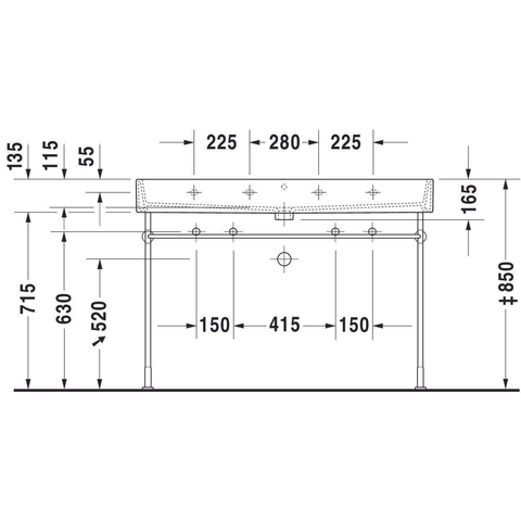 Duravit Vero Air Wastafel - 120x47cm - 2 kraangaten - met overloop - wit