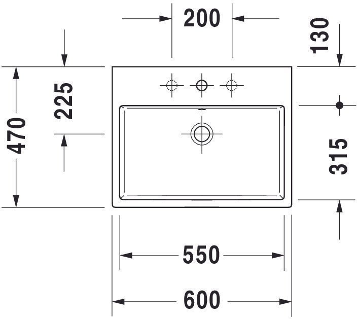 Duravit Vero Air Opbouw Wastafel - 60x47cm - zonder kraangat - zonder overloop - rugzijde geglazuurd - wit