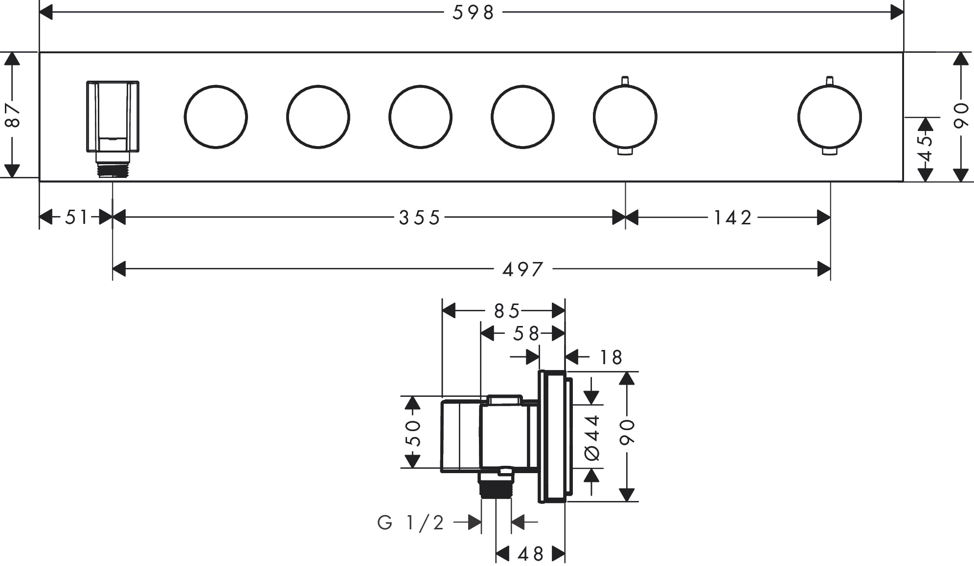 AXOR ShowerControl afbouwdeel voor inbouwdeel thermostaat module v. 4 functies 59.8x90cm chroom