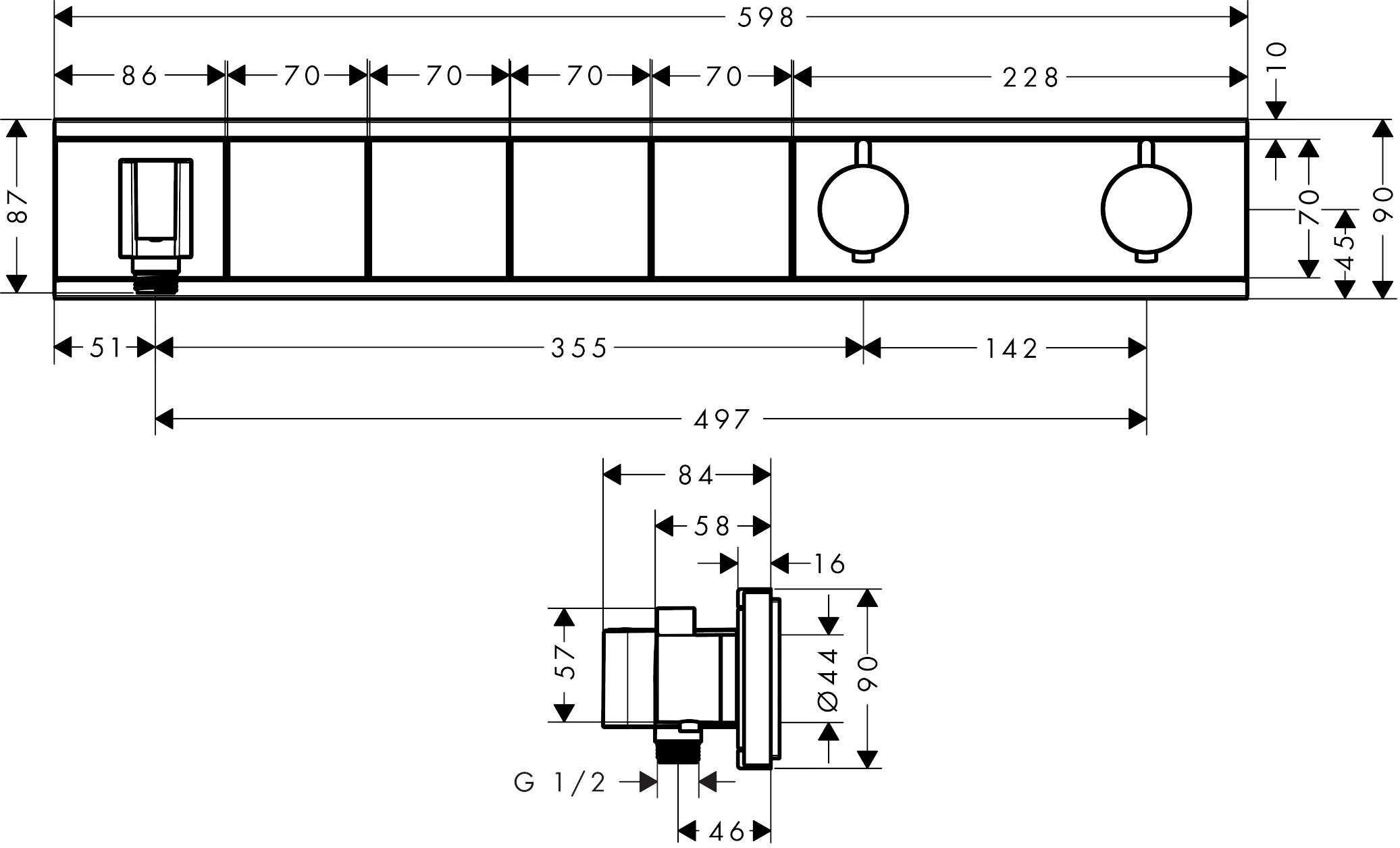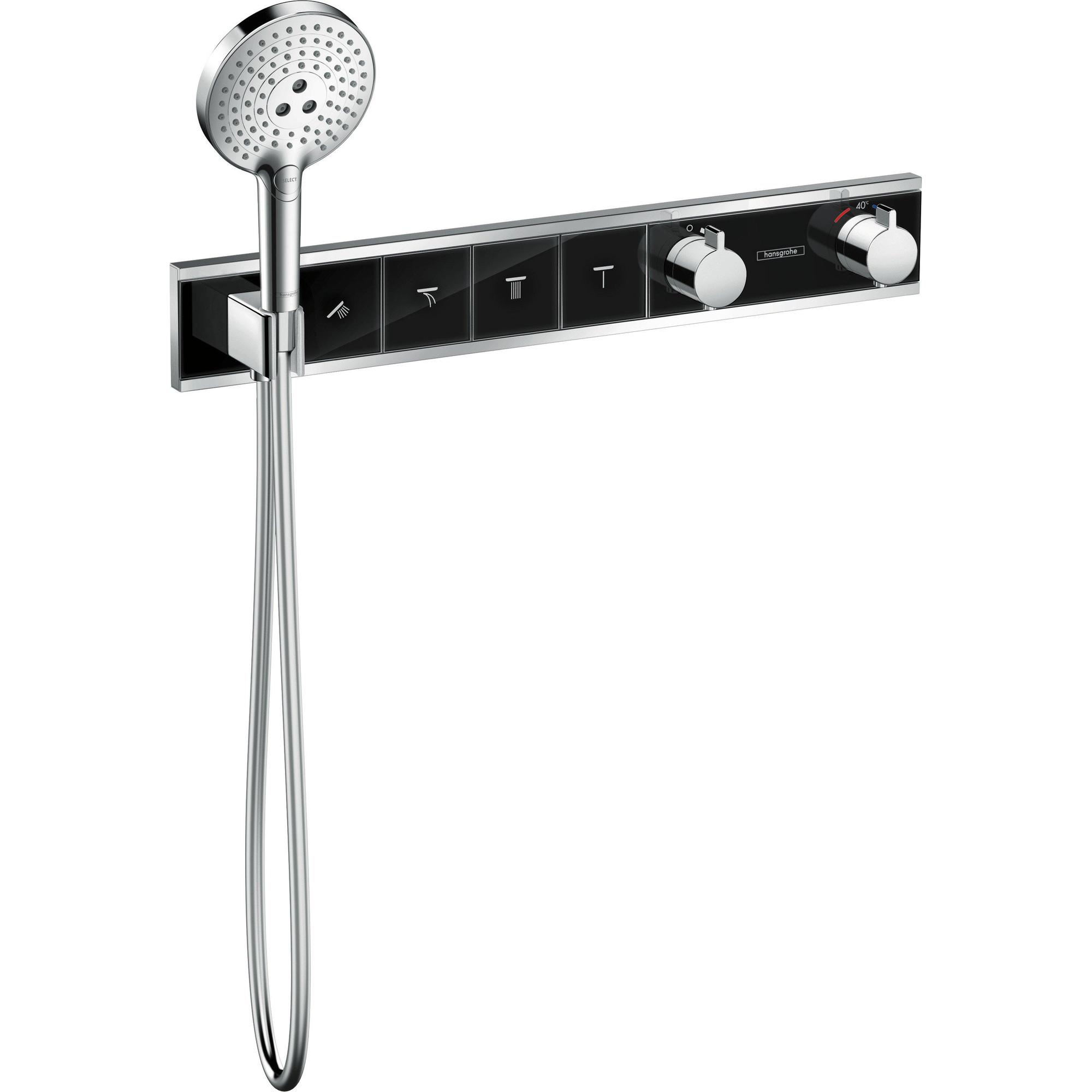 Dankzij de elegante montage van de kraantechniek in de wand (inbouw) zorgt de hansgrohe douchethermostaat Rainselect voor veel ruimte voor ongestoord doucheplezier. Voor de montage is het waterdichte, akoestisch ontkoppelde inbouwdeel (artikelnr. 15312180) voor vier verbruikers nodig. Dit product is apart verkrijgbaar.