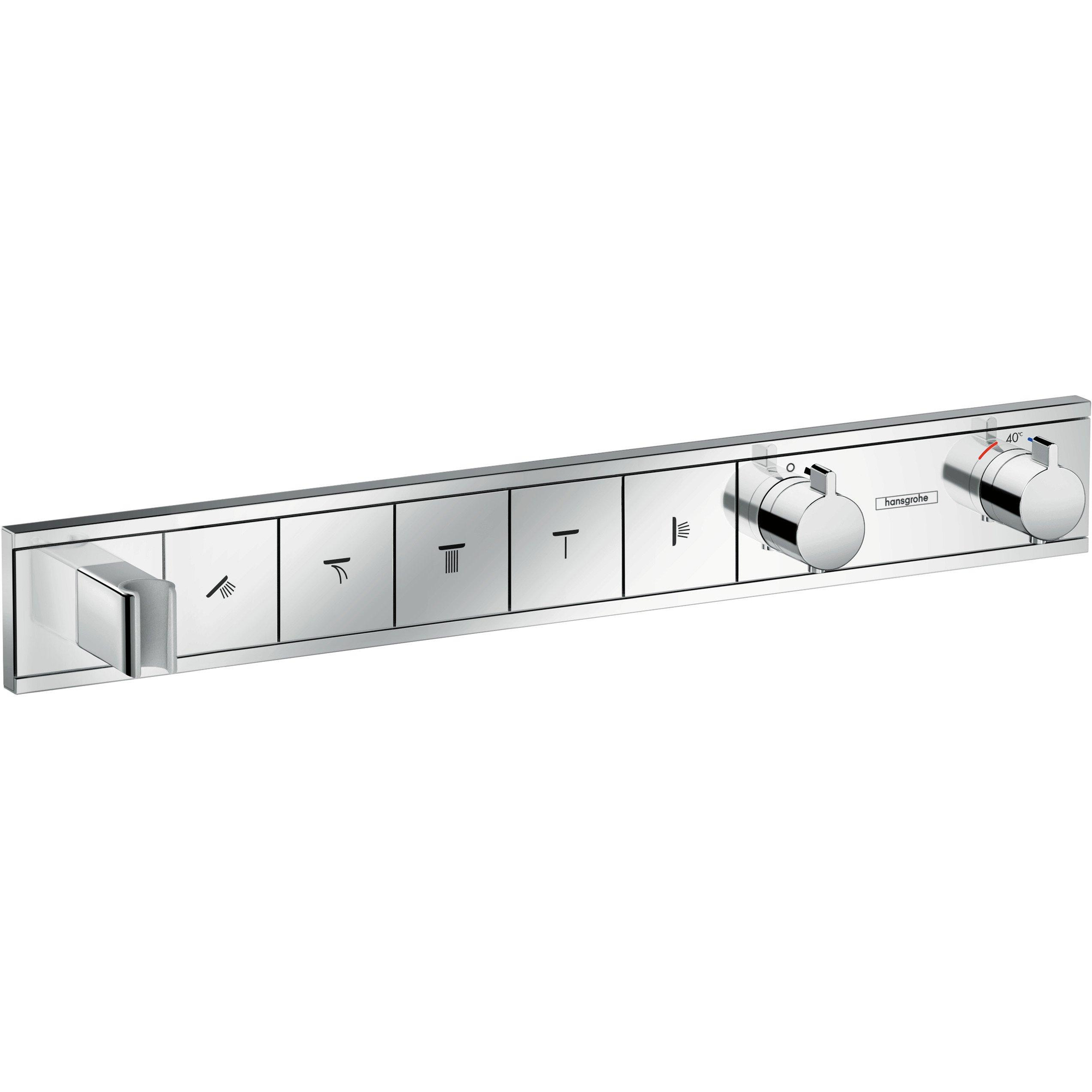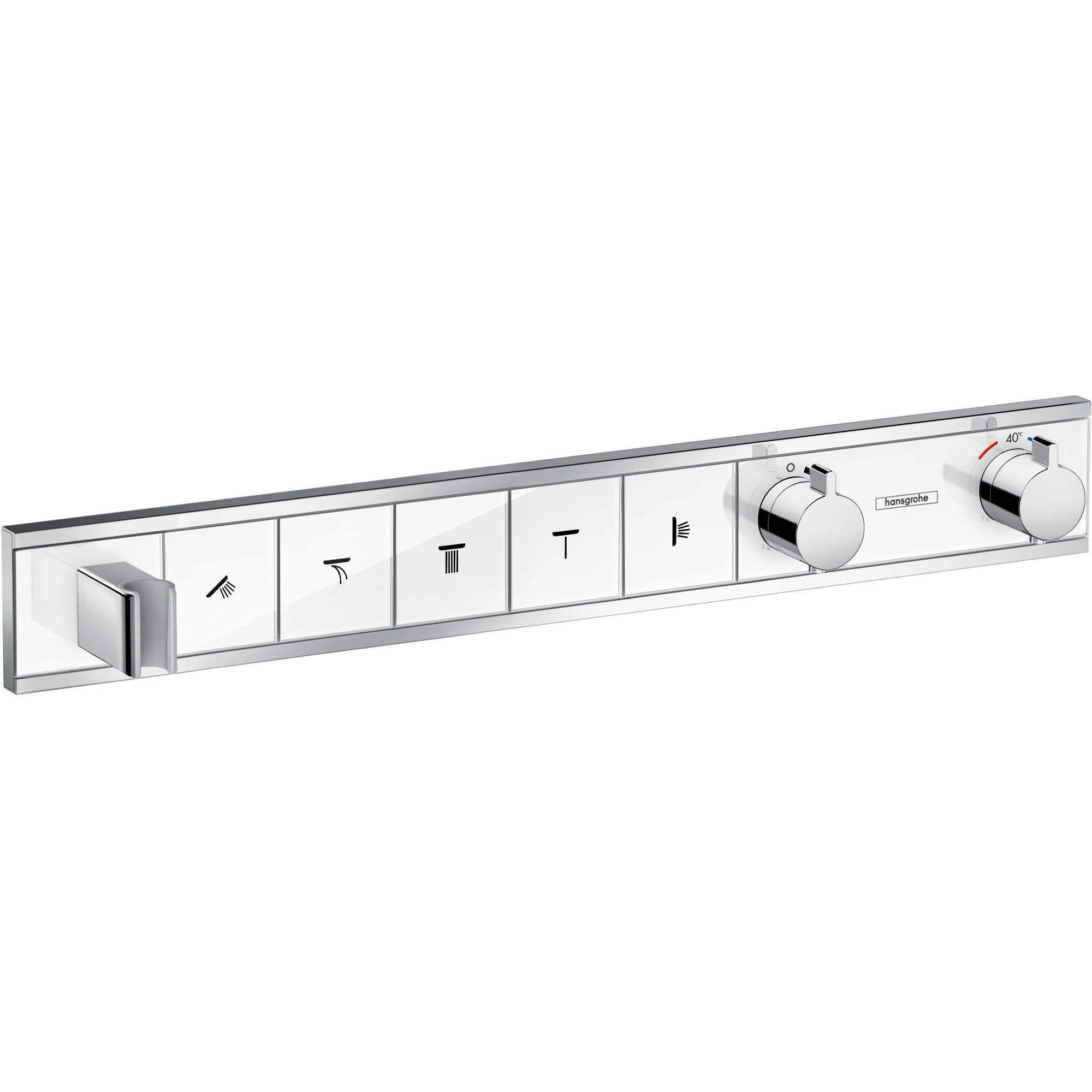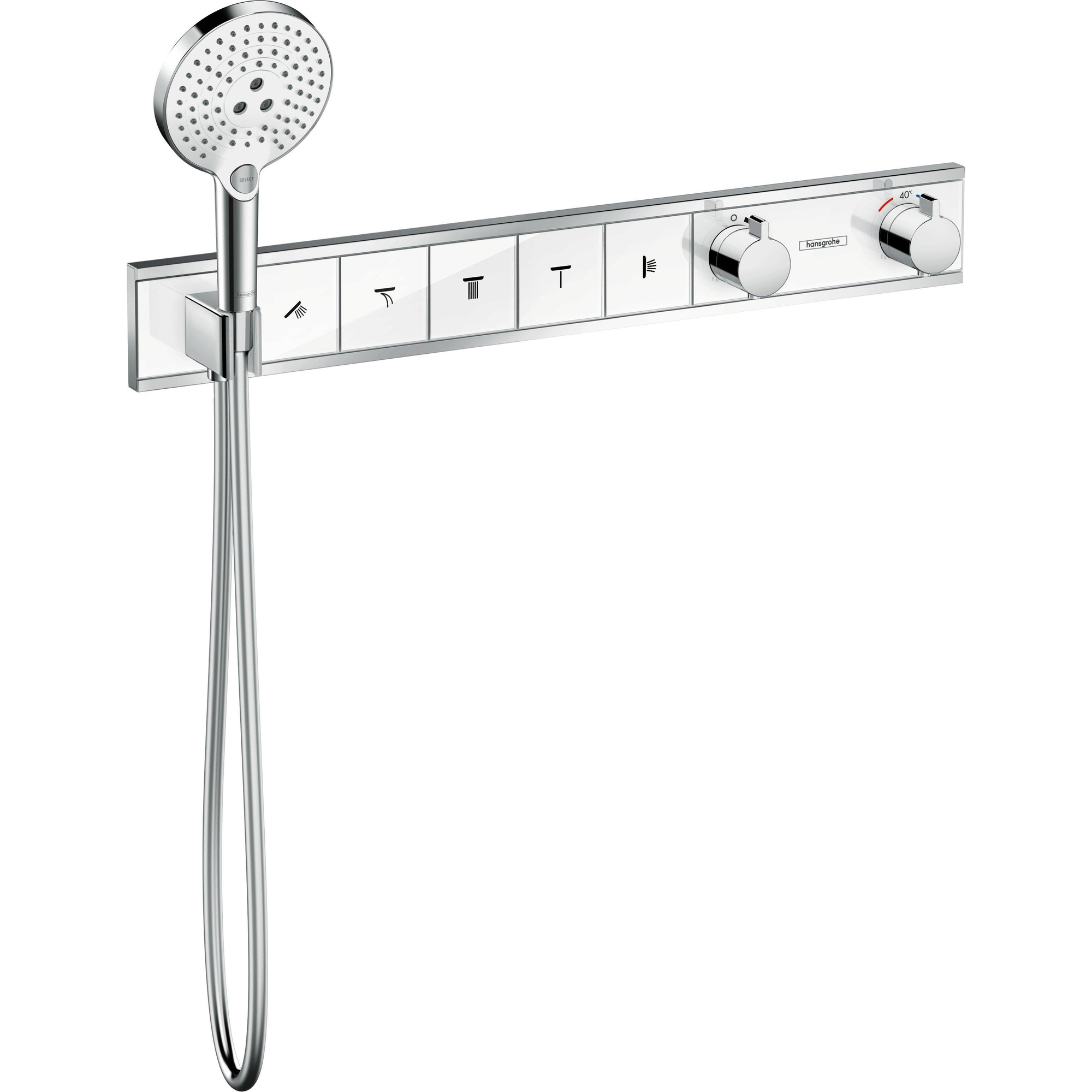 Dankzij de elegante montage van de kraantechniek in de wand (inbouw) zorgt de hansgrohe douchethermostaat Rainselect voor veel ruimte voor ongestoord doucheplezier. Voor de montage is het waterdichte, akoestisch ontkoppelde inbouwdeel (artikelnr. 15313180) voor 5 verbruikers nodig. Dit product is apart verkrijgbaar.