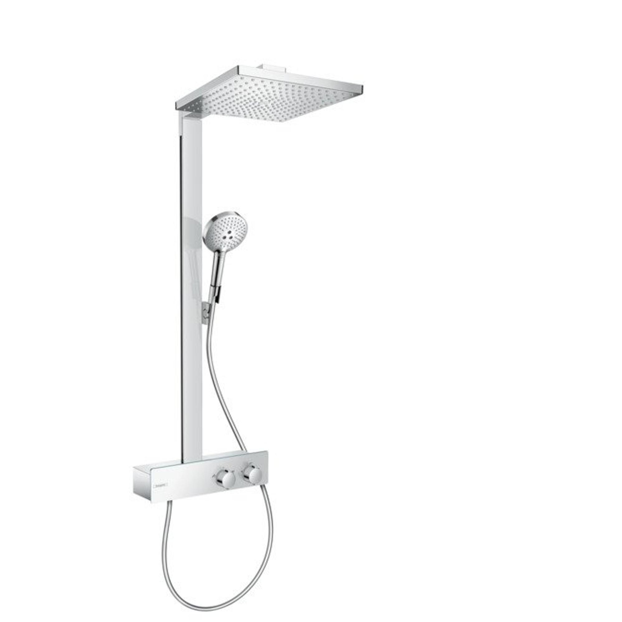 Hansgrohe Raindance E Square E300 1jet showerpipe:m. ShowerTablet 350 opbouw douchekraan thermostaat m. Raindance E300 1 jet hoofddouche chroom