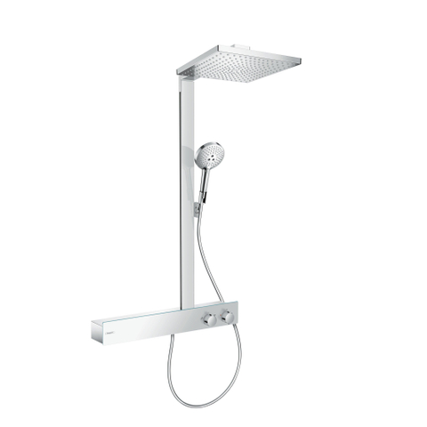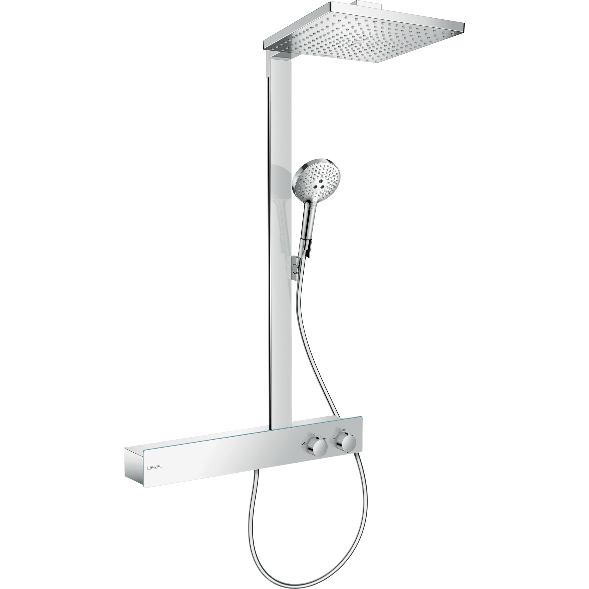 Hansgrohe Raindance E Square E300 1jet showerpipe:m. ShowerTablet 600 opbouw douchekraan thermostaat m. Raindance E300 1 jet hoofddouche chroom