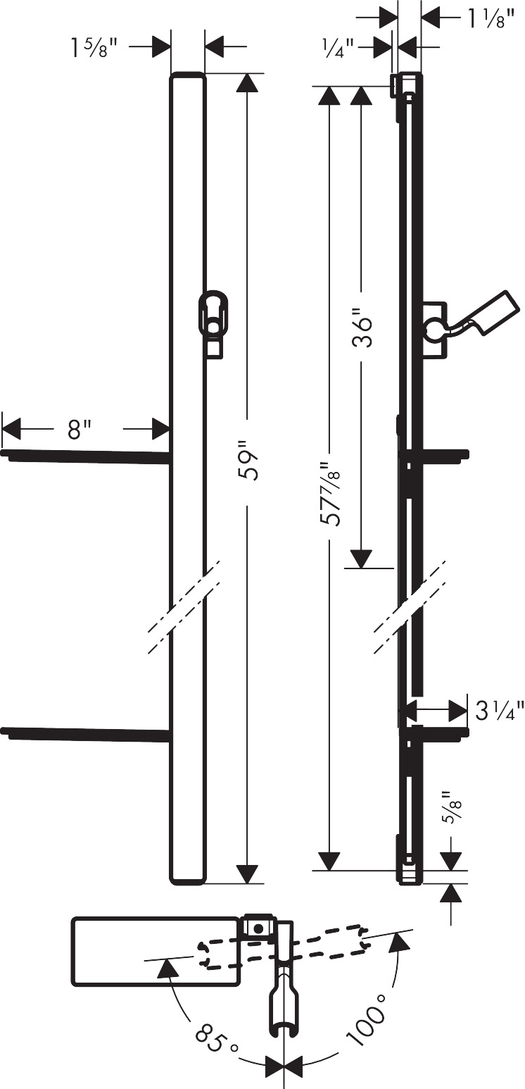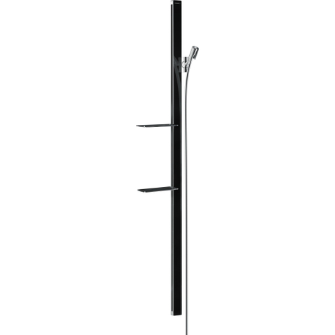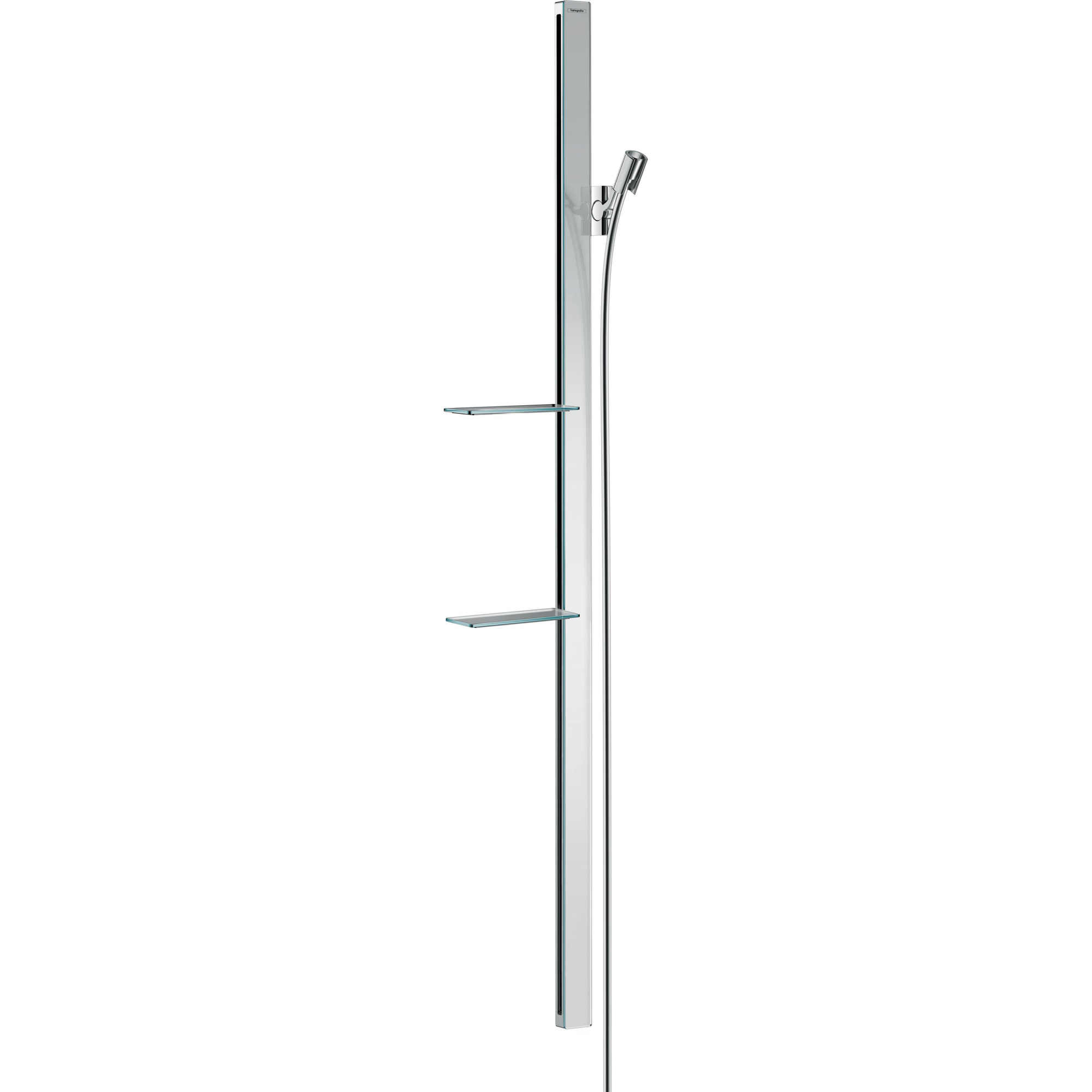De Unica E 1,50 m-glijstang van hansgrohe combineert design innovatief met comfort. Want chique, spiegelend veiligheidsglas speelt hier de hoofdrol. Hoogwaardig en hoogglanzend vormt het de voorkant van de 41 mm brede aluminium glijstang.