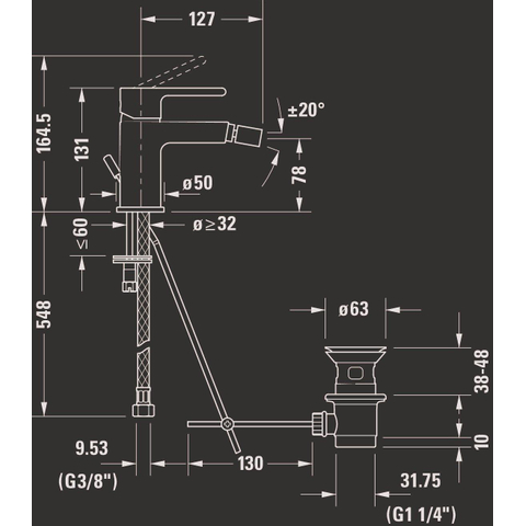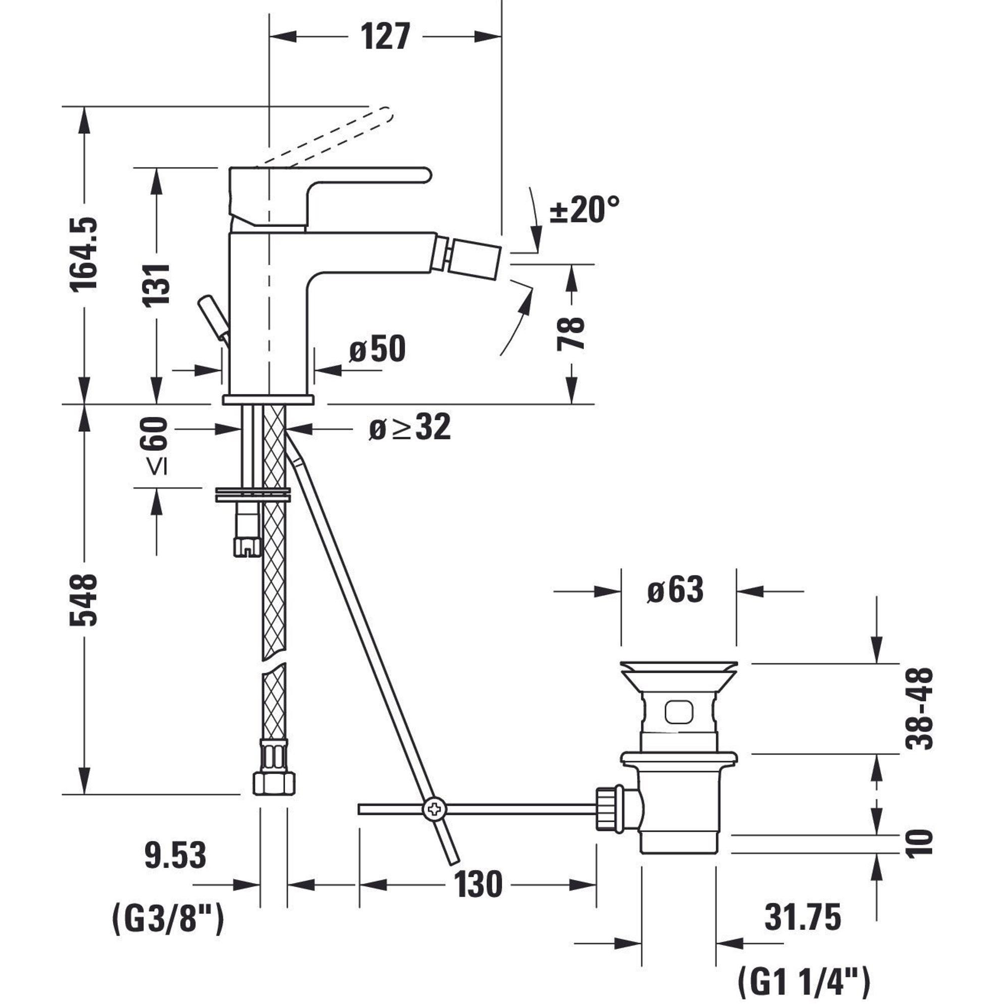 De Duravit B.2 eengreeps bidetmengkraan combineert een strak design met praktische functionaliteit. Dankzij de chroomafwerking voegt deze kraan een stijlvolle en moderne touch toe aan je badkamer. De staande bidetkraan is uitgerust met een handig afvoergarnituur (waste) en een keramische menger voor soepele en nauwkeurige bediening.Met een kraanhoogte van 131 mm en een uitlooplengte van 127 mm biedt deze bidetkraan optimaal gebruiksgemak. De perlator met kanteloptie van 20° zorgt voor een gerichte en comfortabele waterstraal, terwijl de doorstroming beperkt is tot 5 l/min bij 3 bar, wat bijdraagt aan waterbesparing zonder in te leveren op prestaties.
