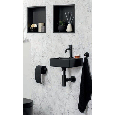 Met zijn luxueuze uitstraling en strakke lijnen voegt de Saniclass Hide luxe Inbouwnis een vleugje elegantie toe aan elke badkamer. De zwarte matte afwerking geeft een gevoel van luxe en verfijning, terwijl het minimalistische design zorgt voor een tijdloze esthetiek. Deze inbouwnis is niet alleen functioneel, maar ook een decoratief element dat je badkamer naar een hoger niveau tilt.