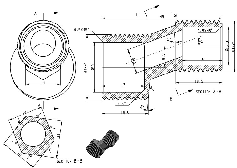 - Geschikt voor leidingen van 3/4 inch naar 1/2 inch