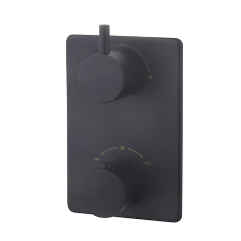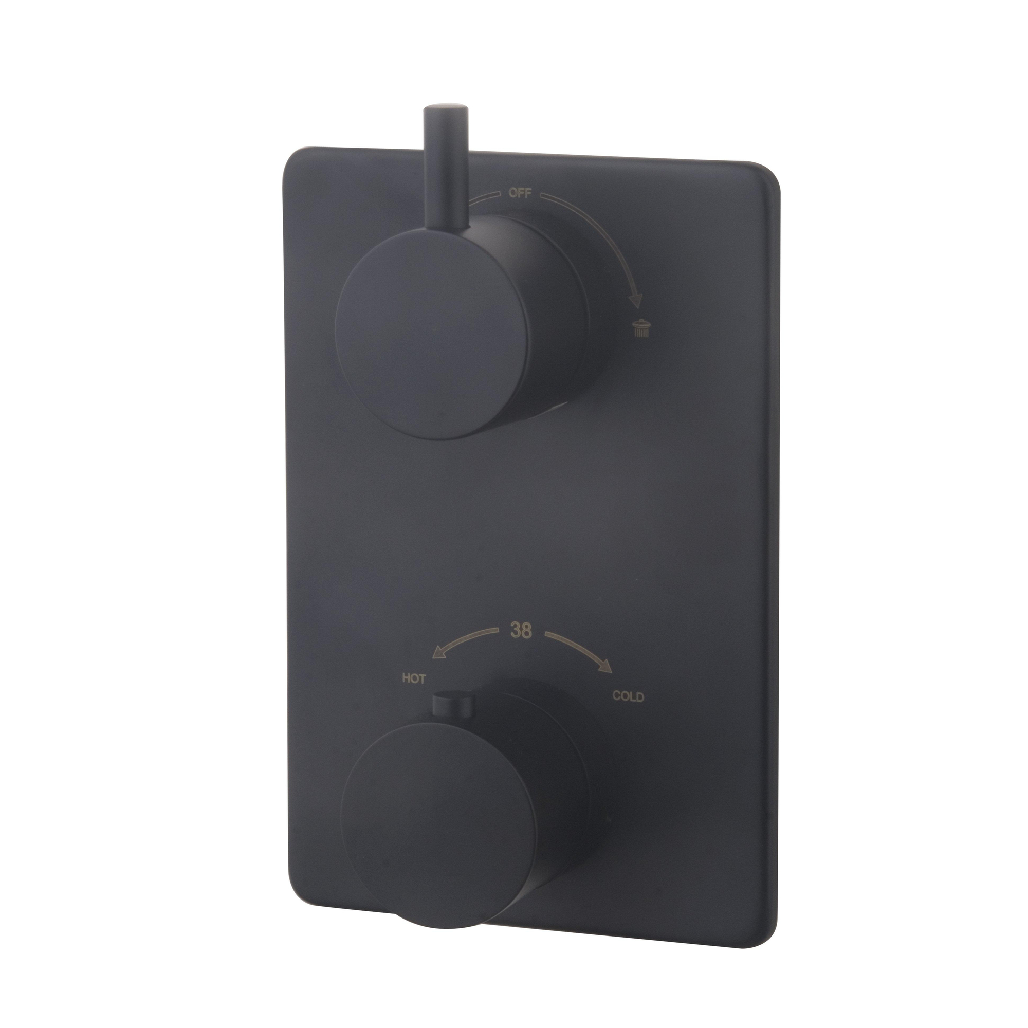 Afbouwdeel voor het inbouwdeel douchethermostaat (apart te bestellen), bestaande uit thermostaatknop, omstelknop(pen) en bodemplaat. Kleur: mat zwart