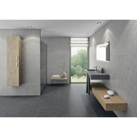 Met zijn gerectificeerde afwerking en betonlook in antraciet mat straalt de Cifre Ceramica tegel een onmiskenbare elegantie uit. Deze tegel voegt een vleugje luxe toe aan elke ruimte en creëert een sfeer van verfijning en klasse. De subtiele textuur en de diepe, rijke kleur van de tegel zorgen voor een tijdloze uitstraling die moeiteloos samengaat met diverse interieurstijlen.