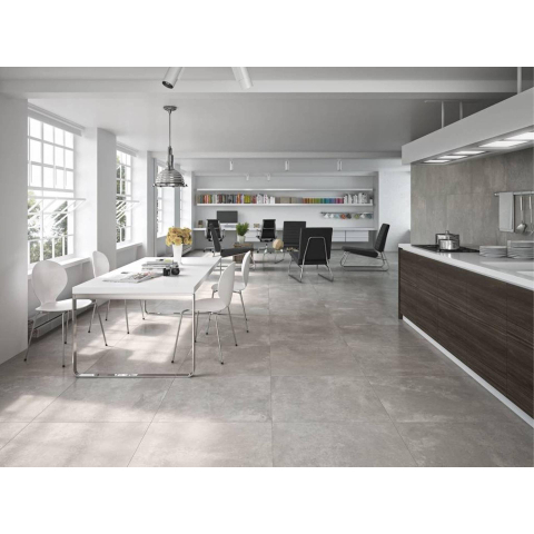 Met zijn veelzijdigheid kan deze tegel zowel in badkamers als keukens worden gebruikt, waardoor een consistente stijl door de hele ruimte wordt gecreëerd. De grijze matte kleur voegt een vleugje elegantie toe, terwijl de betonlook een eigentijdse uitstraling geeft aan elke omgeving.