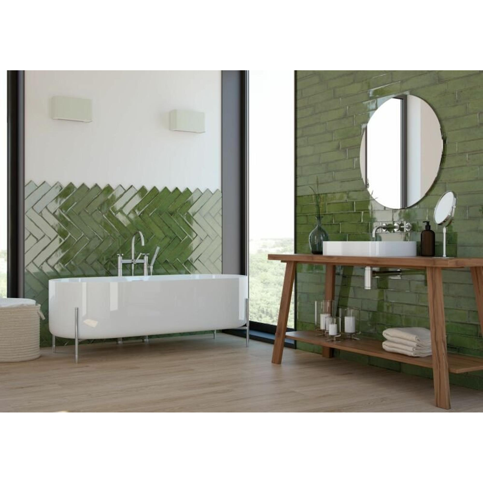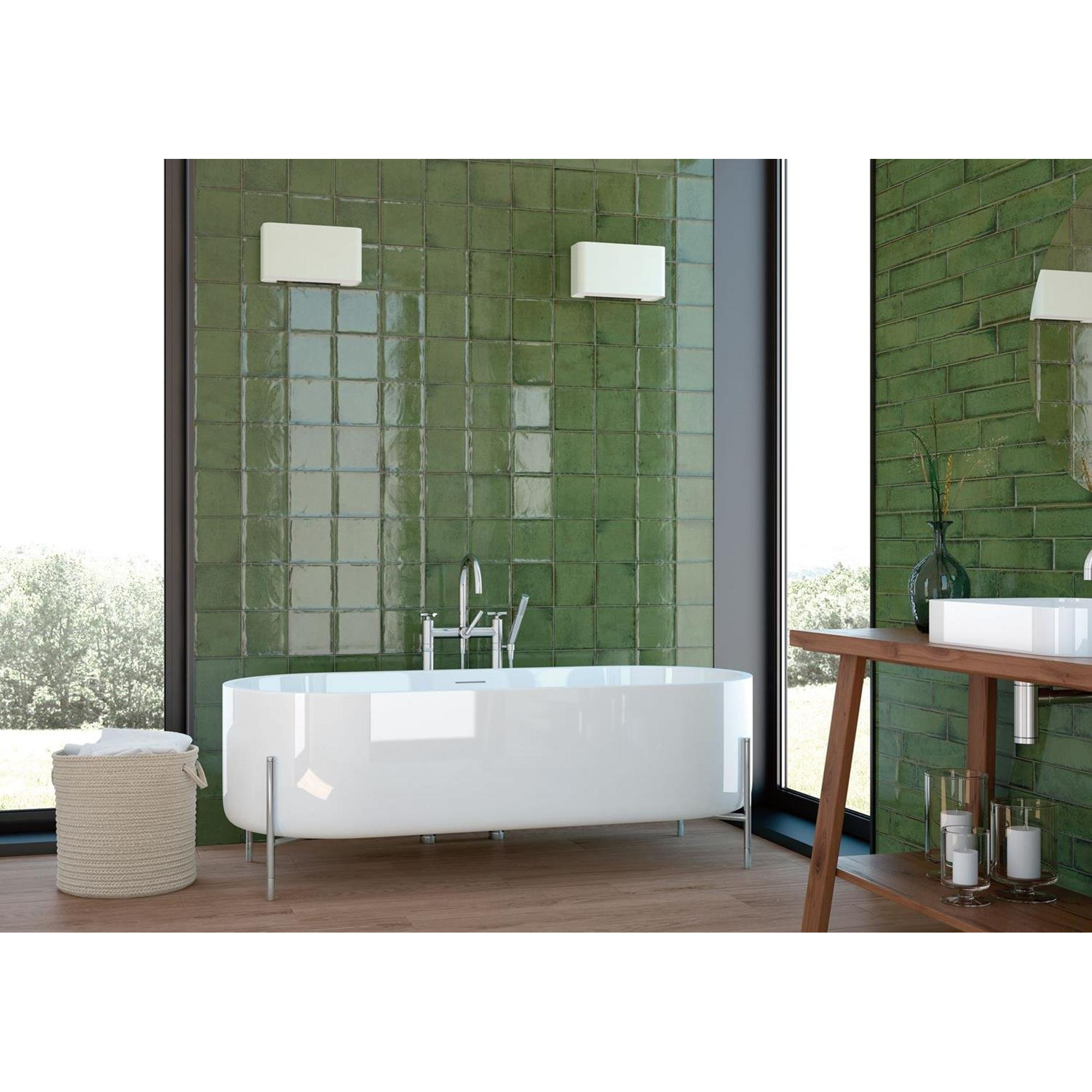 Dankzij de groene glanzende afwerking van deze tegel is hij niet alleen een lust voor het oog, maar ook praktisch in onderhoud. De gladde oppervlakte maakt het reinigen eenvoudig en snel, waardoor je moeiteloos een frisse uitstraling behoudt in je badkamer of keuken. Met minimale inspanning blijft deze wandtegel er jarenlang als nieuw uitzien, waardoor hij de perfecte keuze is voor drukbezochte ruimtes.