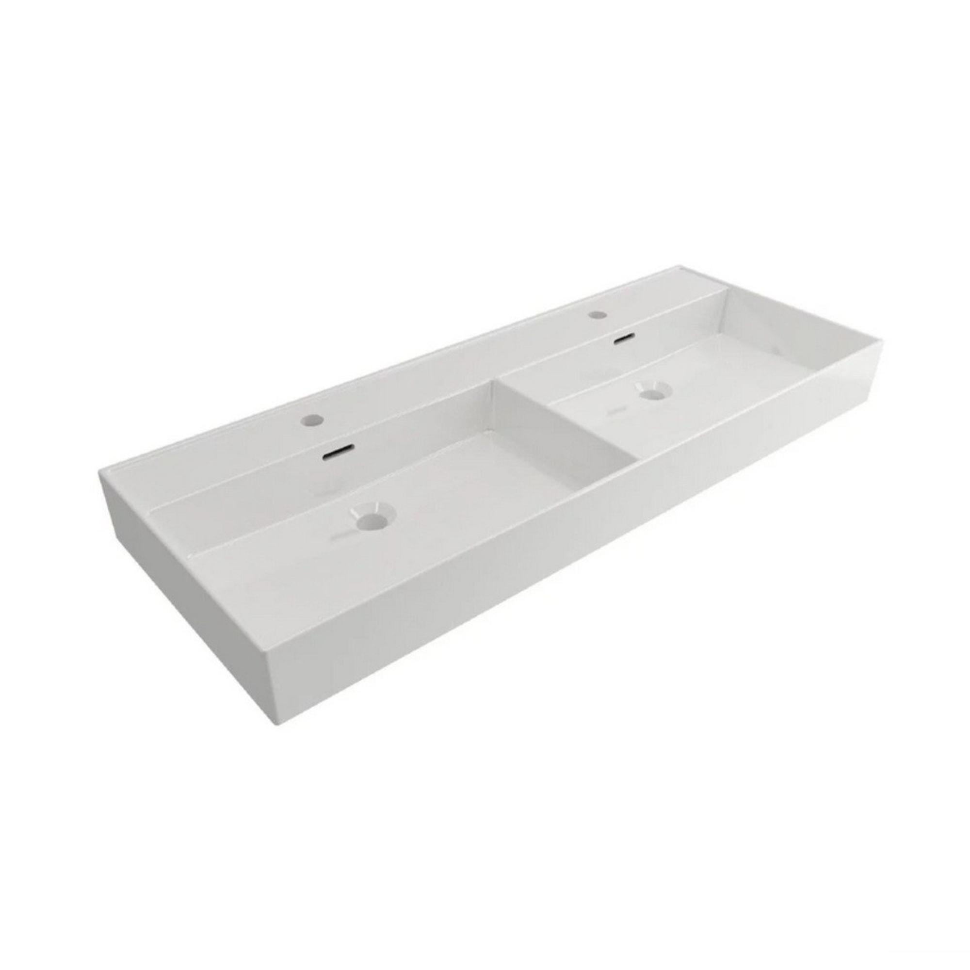 Wastafel Dubbel Plieger Kansas 2 Kraangaten 120x46,6 cm met Overloop Wit