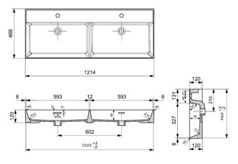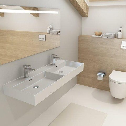Plieger Kansas wastafel dubbel 2 kraangaten met overloop 120x46.6cm matwit