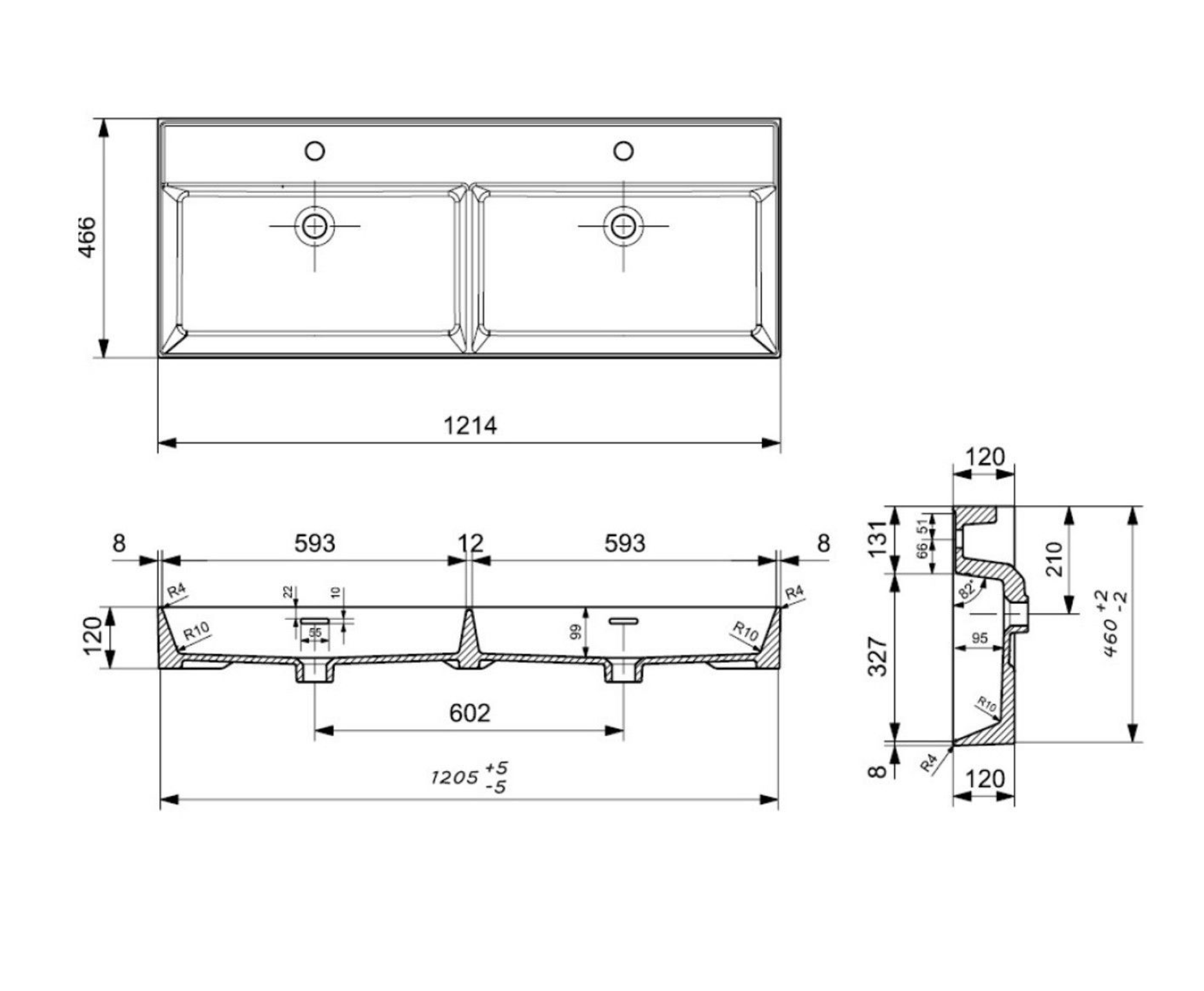 Specificaties Wastafel Dubbel Plieger Kansas 2 Kraangaten 120x46,6 cm met Overloop Mat Zwart: