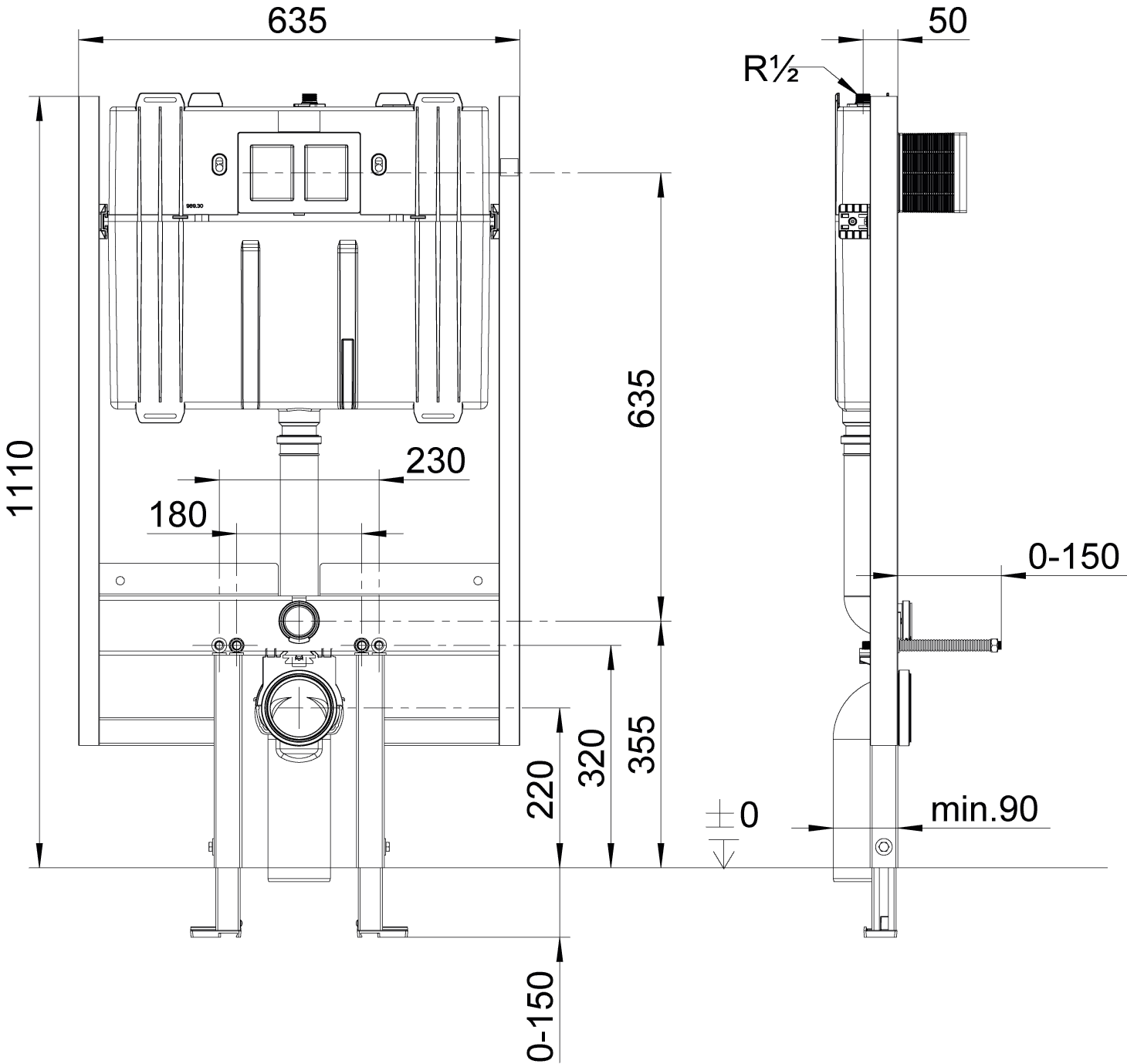 Villeroy & Boch Viconnect inbouw reservoir 118,5x66,5cm inbouwdiepte 9 cm