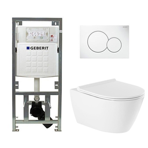 QeramiQ Salina Toiletset - rimless - diepspoel - softclose - quickrelease zitting - Geberit Sigma20 bedieningsplaat RVS geborsteld - wit