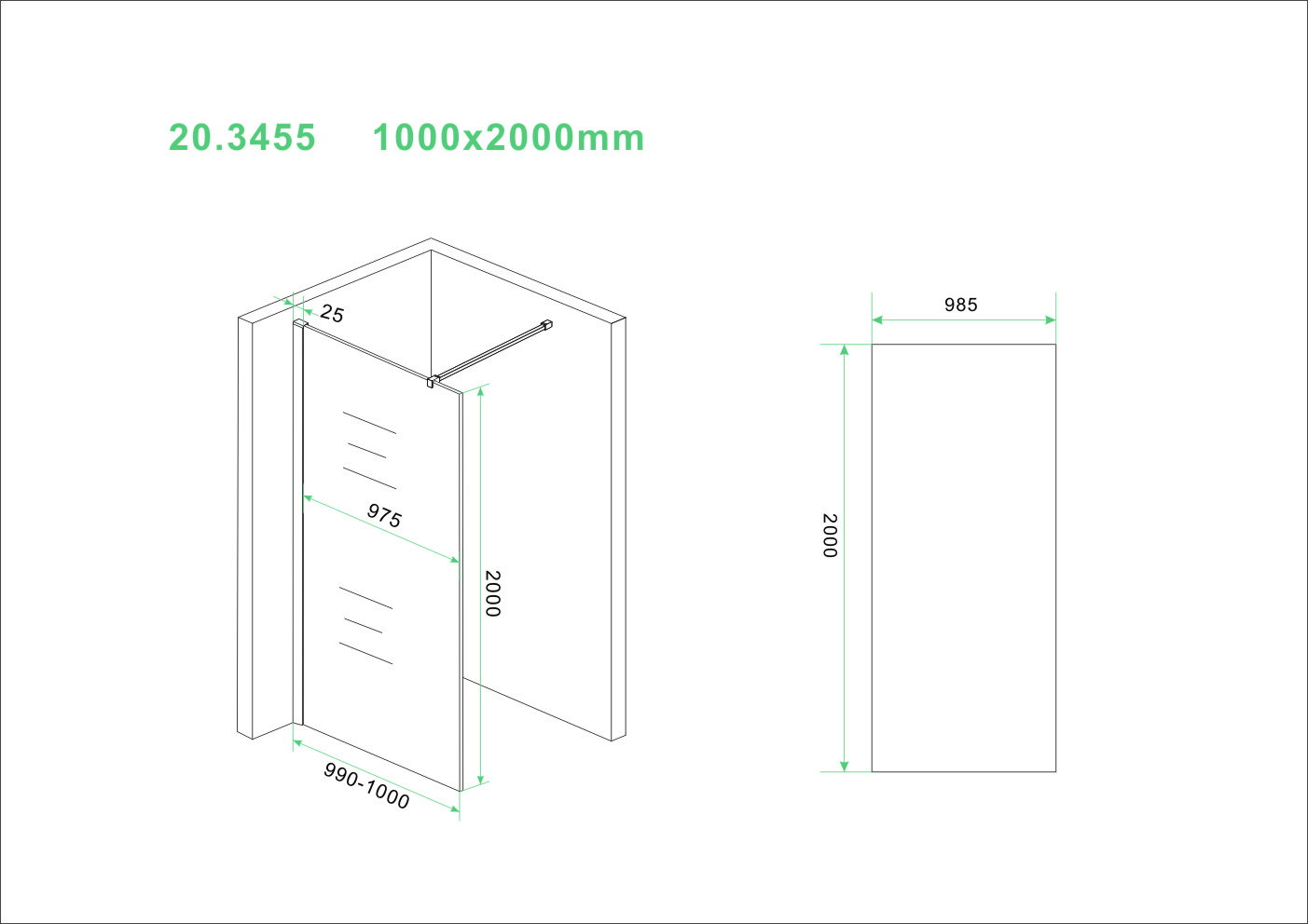 Maat: 1000x2000 met NANO behandeld glas van 8mm dik