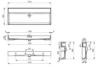 Plieger Kansas wastafel zonder kraangaten met overloop 120x46.6cm matwit