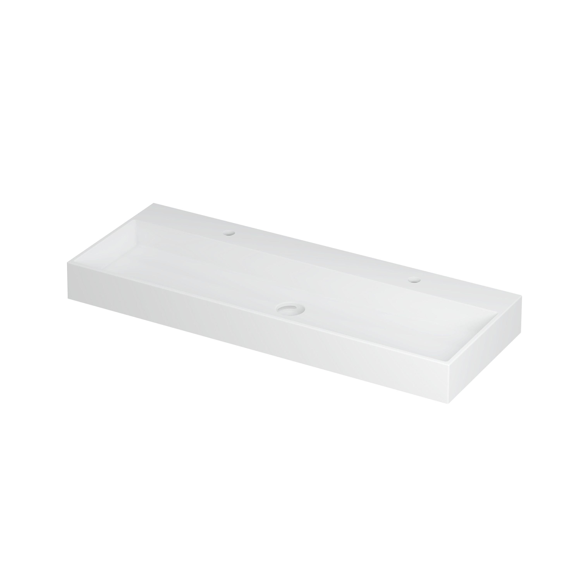 INK United wastafel - 120x45x11cm - 1 wasbak - 2 kraangaten - porselein Mat wit