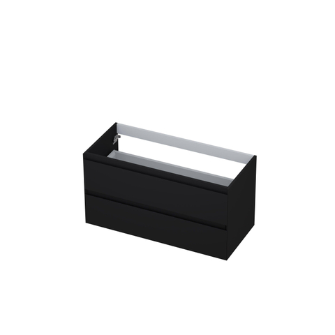 INK Wastafelonderkast - 100x45x52cm - 2 lades - greeploos - 45 graden afwerking rondom - MDF lak zwart mat