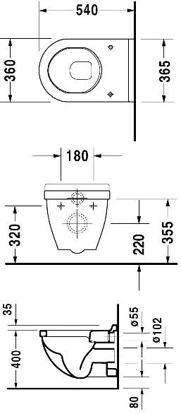 Duravit Starck 3 wandcloset diepspoel spoelrandloos 54cm met verdekte bevestiging en toiletzitting wit