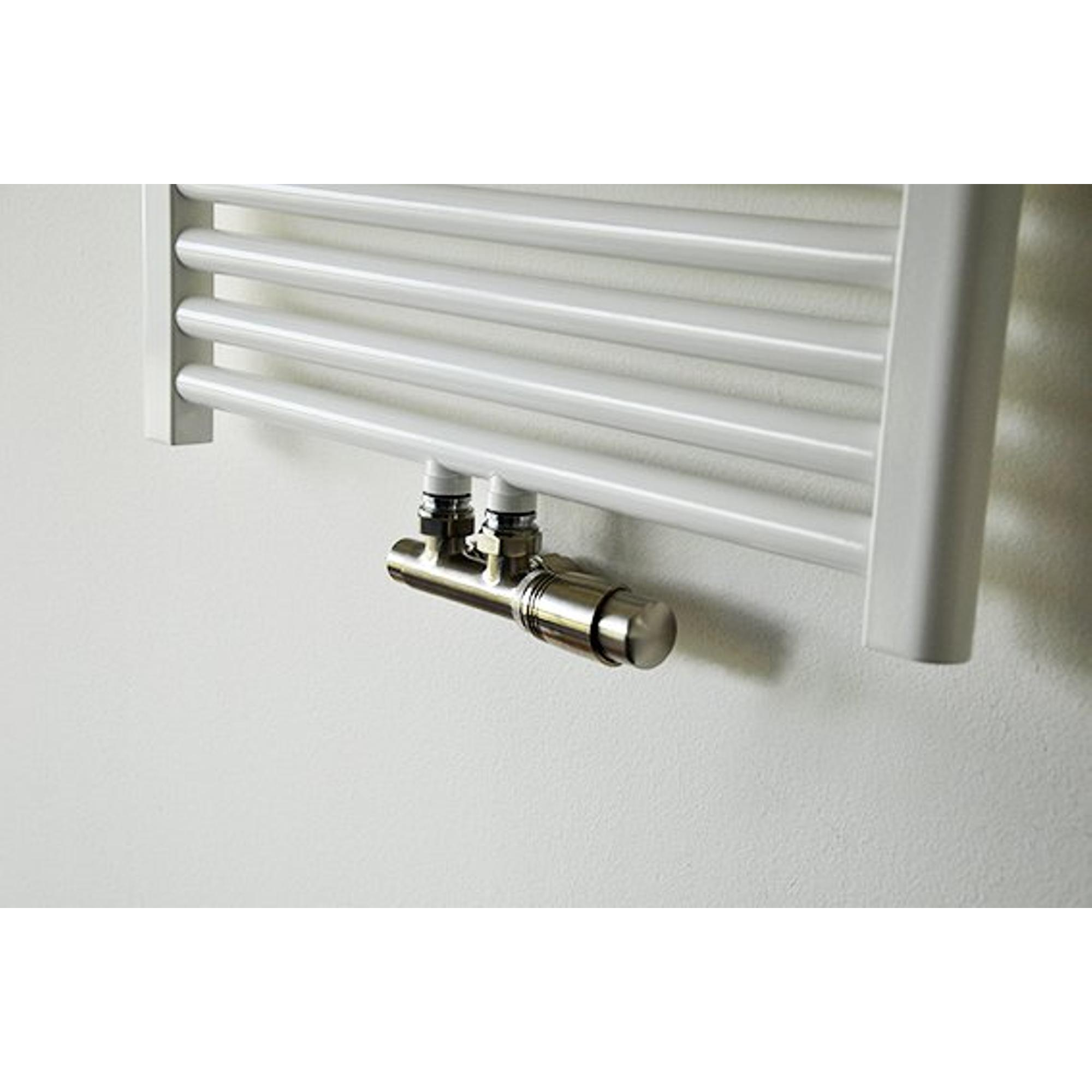 De Riko set thermostatisch onderblok haaks-rechts onderscheidt zich door zijn stijlvolle uitstraling en moderne design. Het geborsteld stalen oppervlak geeft een luxe uitstraling aan je badkamer en past perfect bij verschillende interieurstijlen. Met zijn strakke lijnen en hoogwaardige afwerking is dit onderblok een eyecatcher in elke badkamer.