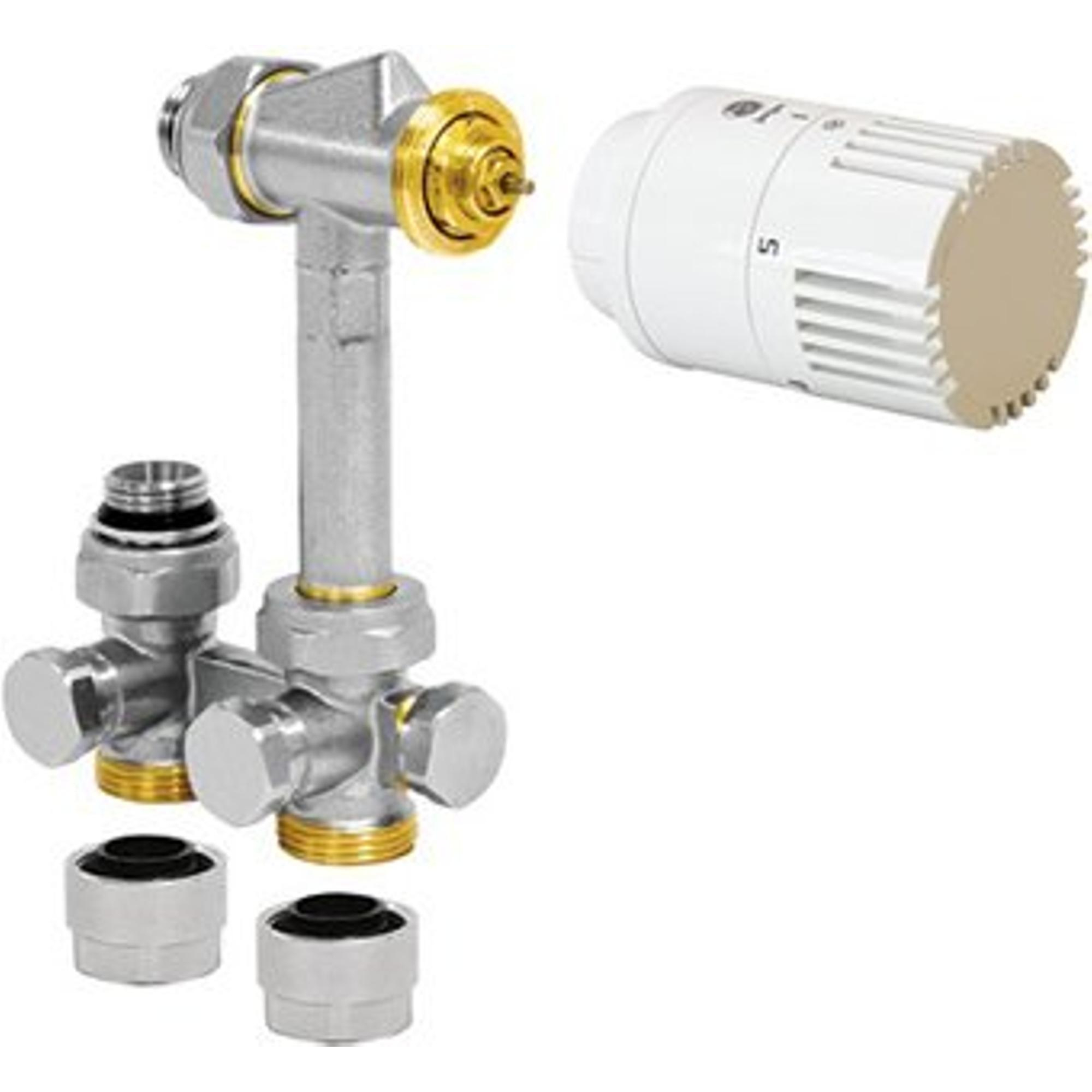 Jaga Low-H20 aansluitset 104 naar vloer 180° Jaga H-ventiel 3/4euro met thermostaatkop JW Ø15/1mm FE/CU wit
