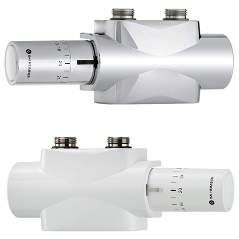 IMI Heimeier Multilux Eclipse 2-pijps onderblokset m. Halo m. debietregeling, recht en haaks R1/2 - G3/4 HOH 50mm design-uitvoering wit