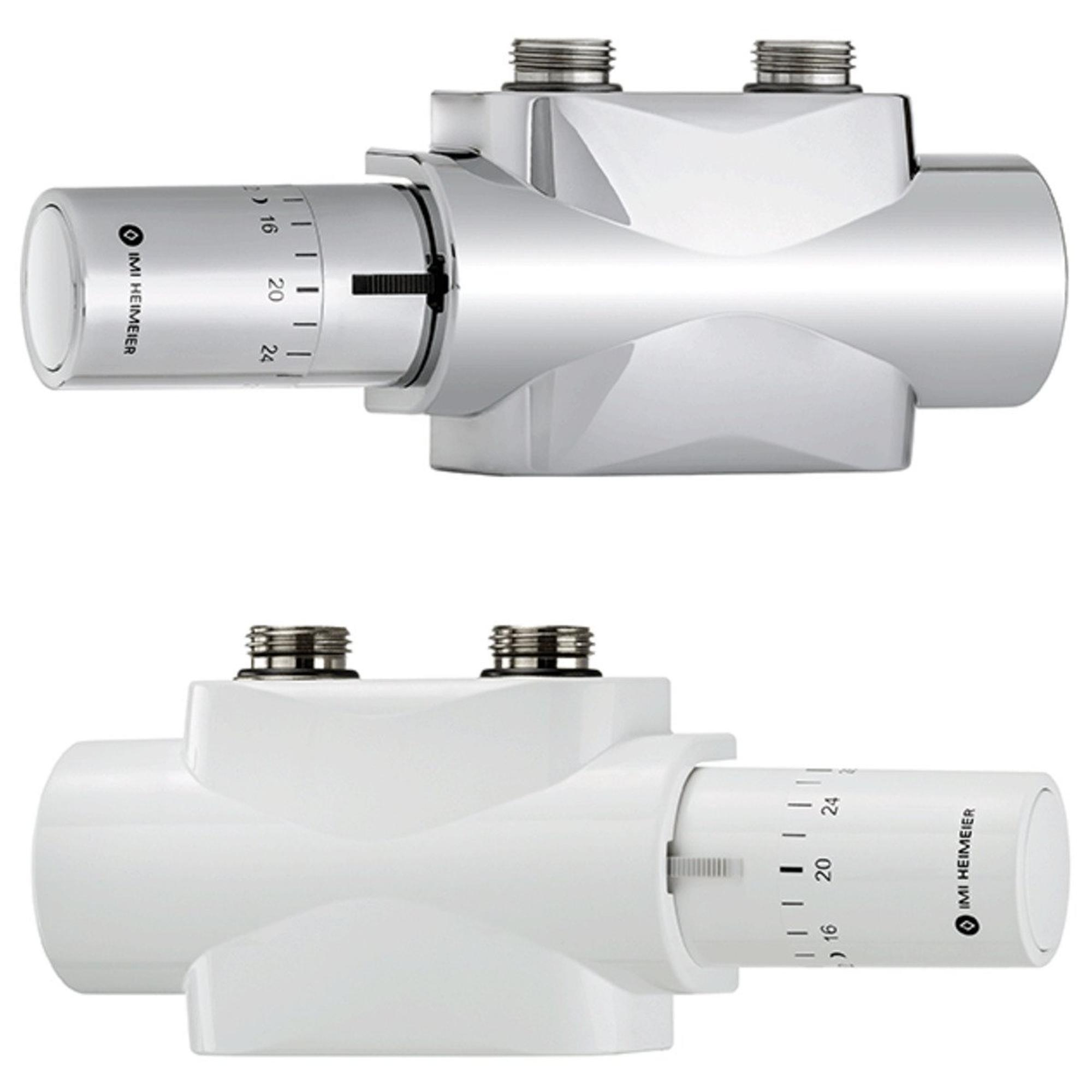 IMI Heimeier Multilux 4 1 of 2-pijps onderblokset m. Halo, recht en haaks R1/2 - G3/4 HOH 50mm design-uitvoering wit