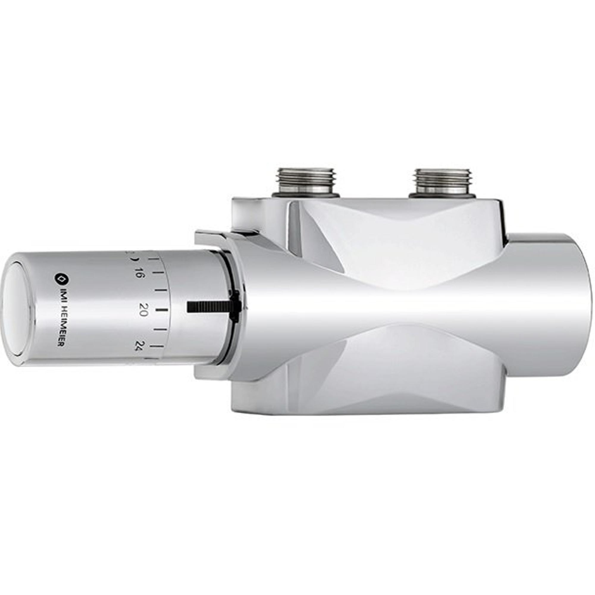 IMI Heimeier Multilux 4 1 of 2-pijps onderblokset m. Halo, recht en haaks R1/2 - G3/4 HOH 50mm design-uitvoering chroom