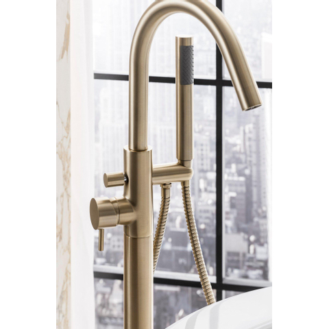 Crosswater MPRO Badkraan - vrijstaand - met staafhanddouche - messing geborsteld
