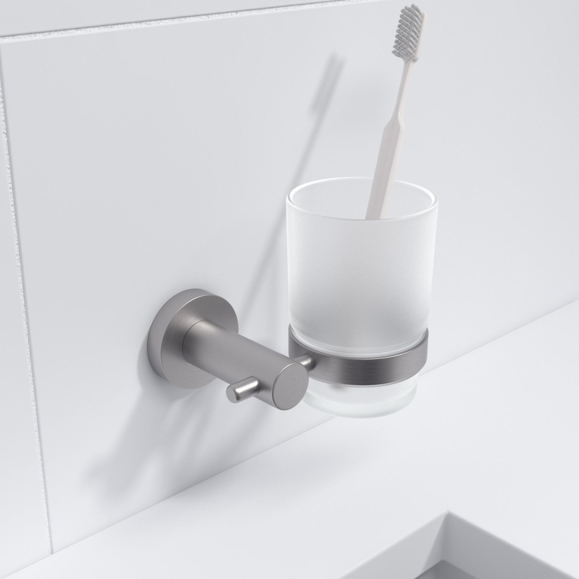 De Ozean Eternal Glashouder straalt elegantie uit met zijn slanke en minimalistische ontwerp. Het enkele bevestigingspunt zorgt voor een zwevend effect, terwijl de ronde vormen een zachte en verfijnde uitstraling geven. Deze glashouder is een subtiele blikvanger in je badkamer, waardoor je ruimte een luxueuze uitstraling krijgt.