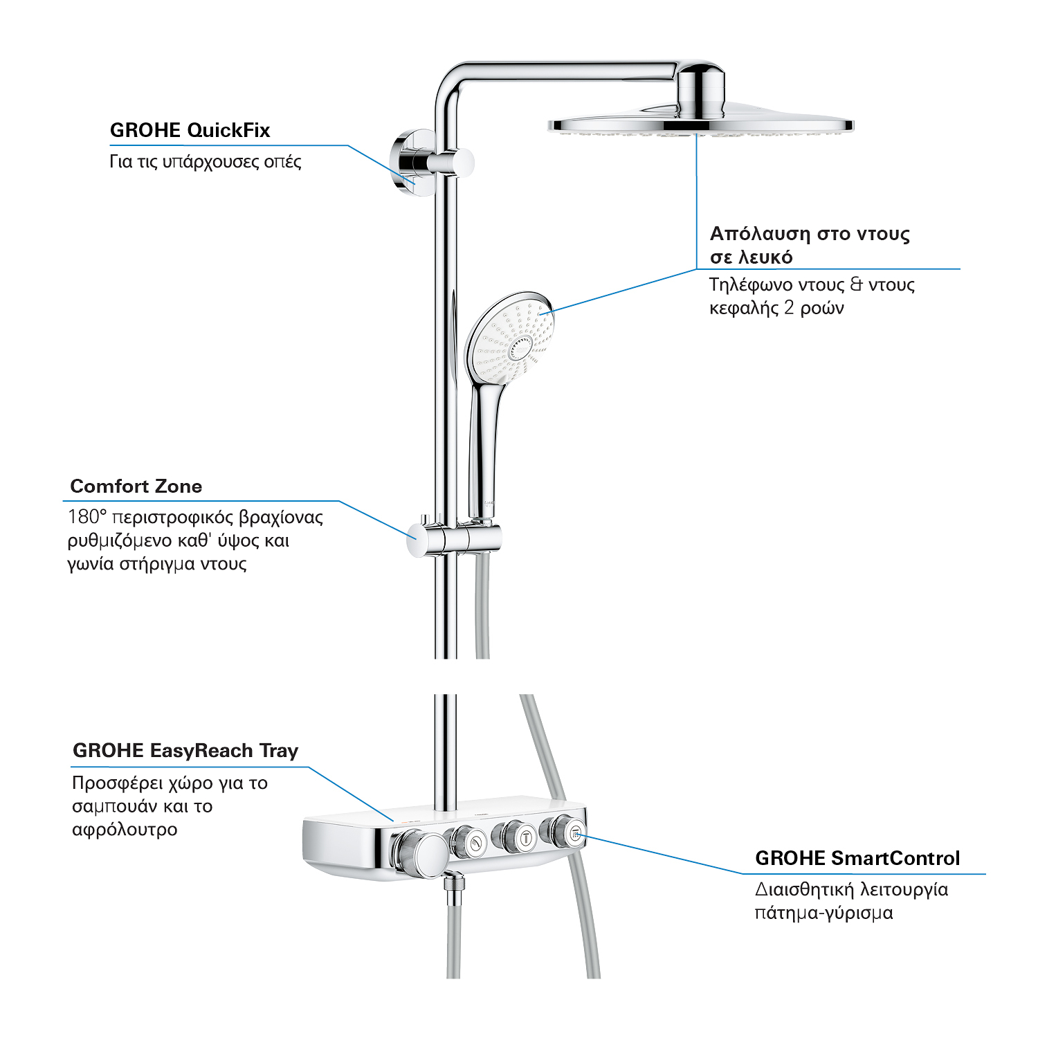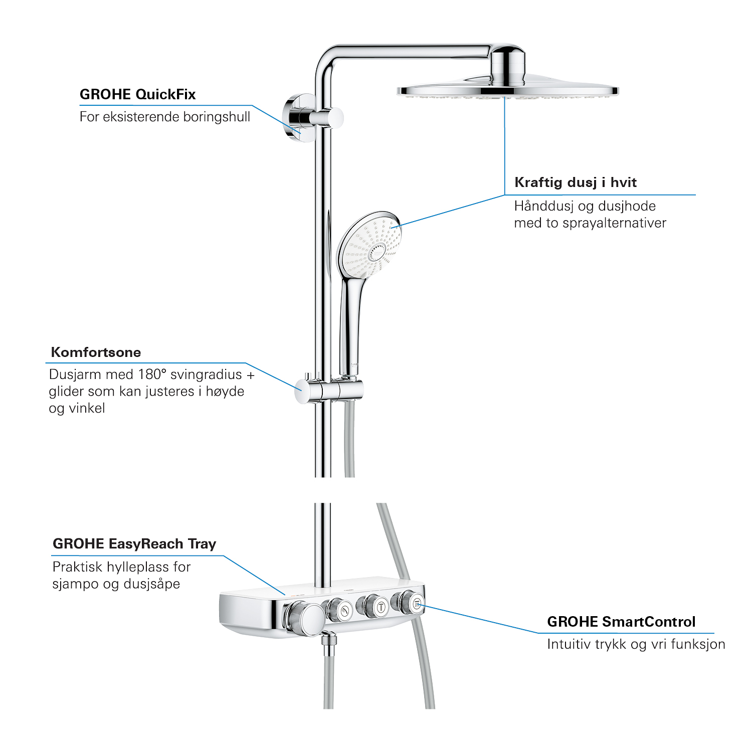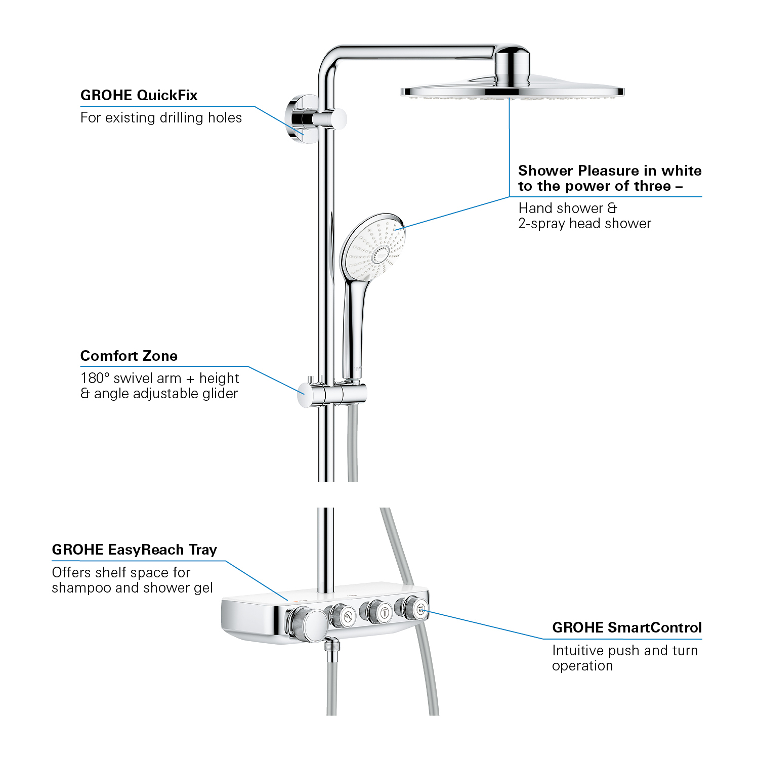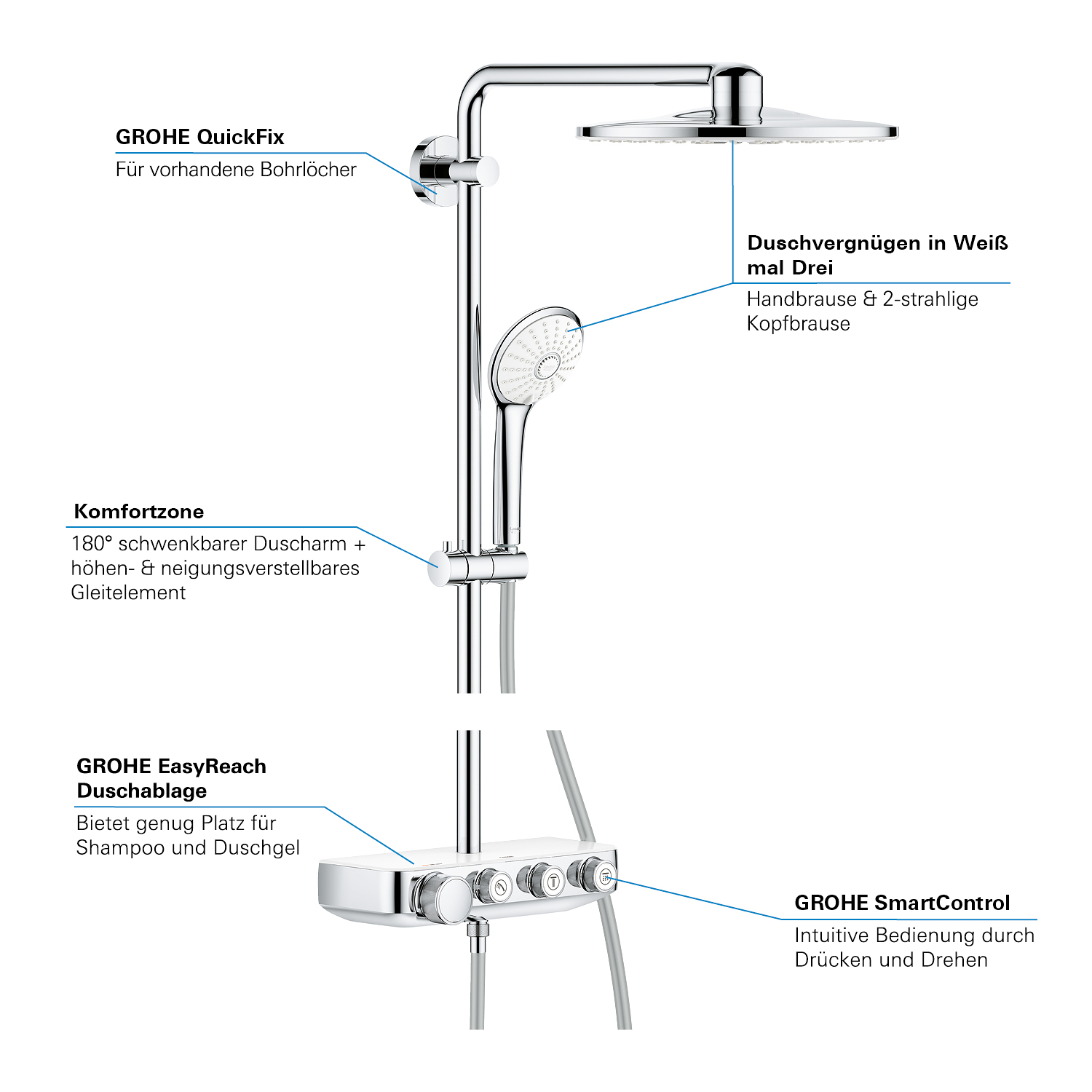 GROHE Euphoria SmartControl 310 Douchesysteem - moeiteloze, nauwkeurige bediening en een verfrissende kosmopolitische stijl
