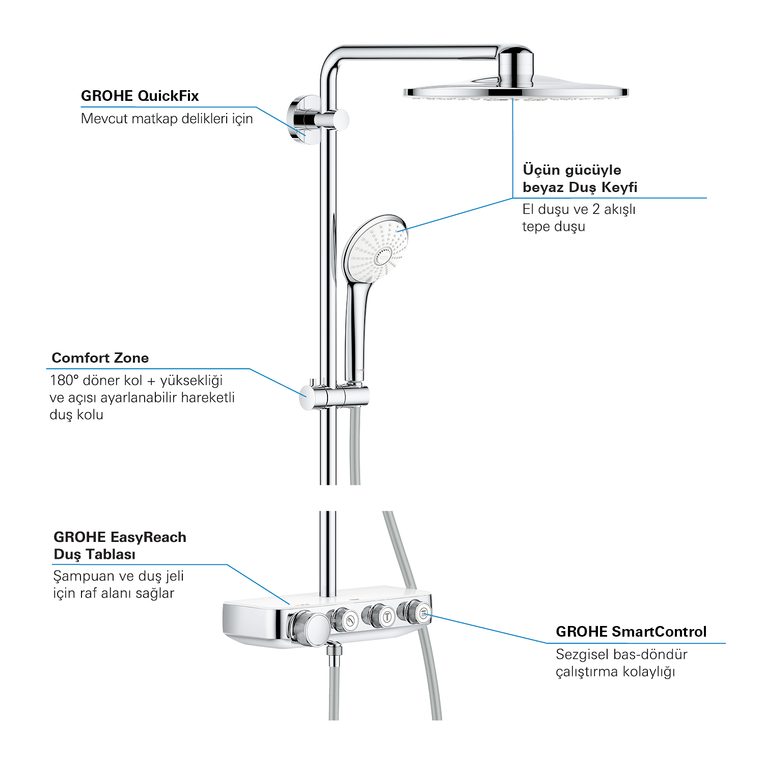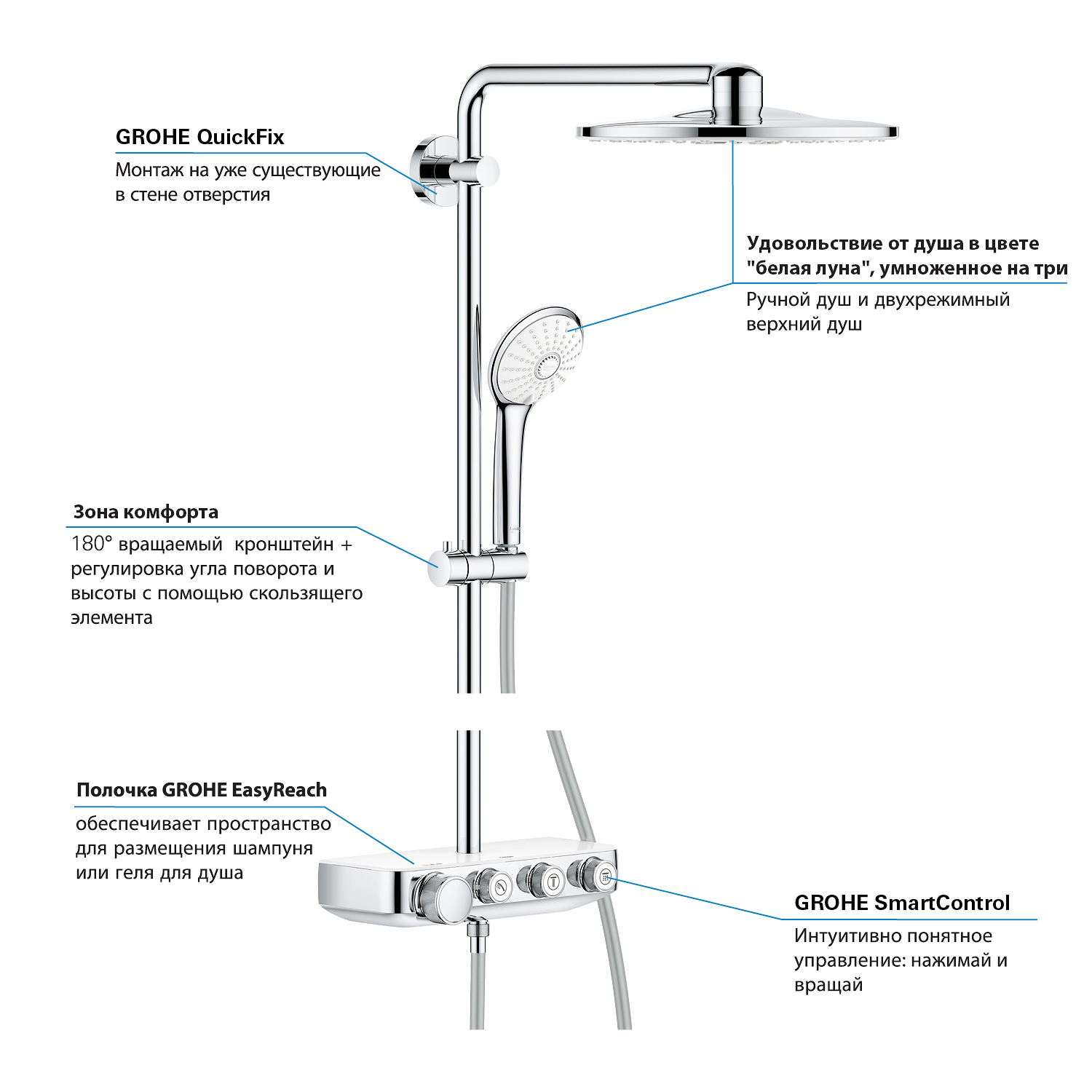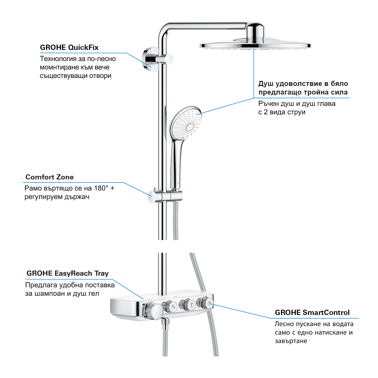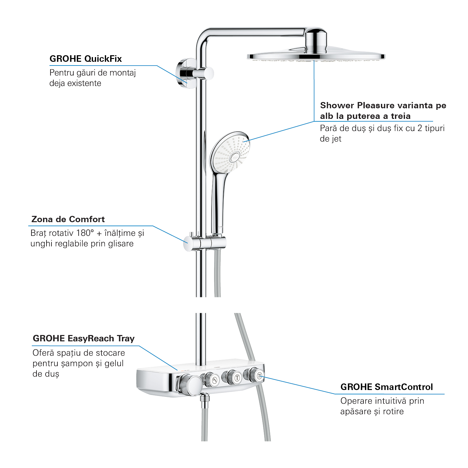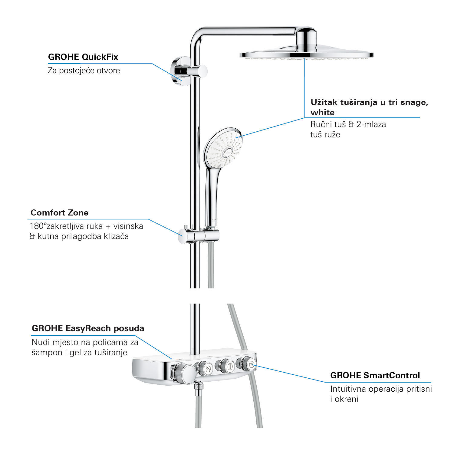 GROHE Euphoria SmartControl 310 Douchesysteem - moeiteloze, nauwkeurige bediening en een verfrissende kosmopolitische stijl