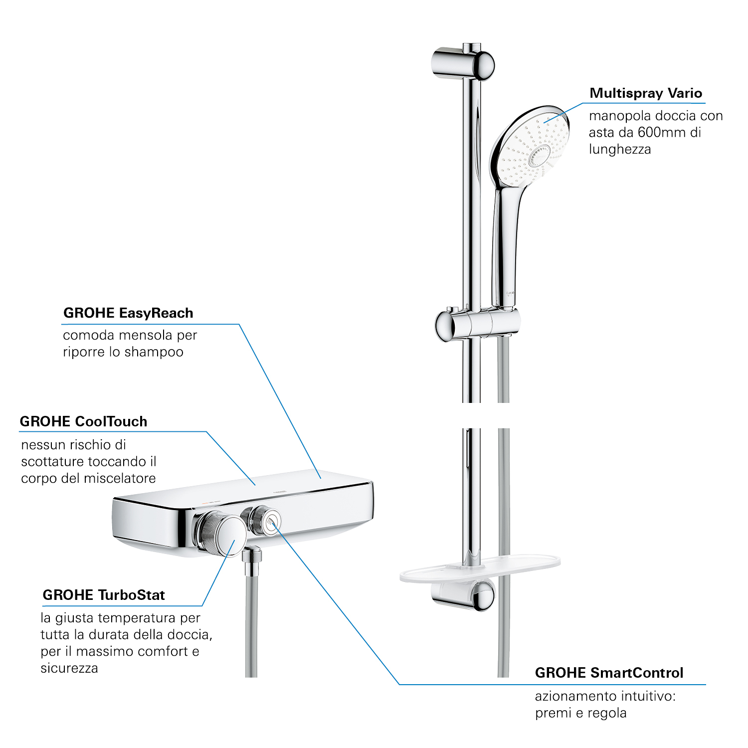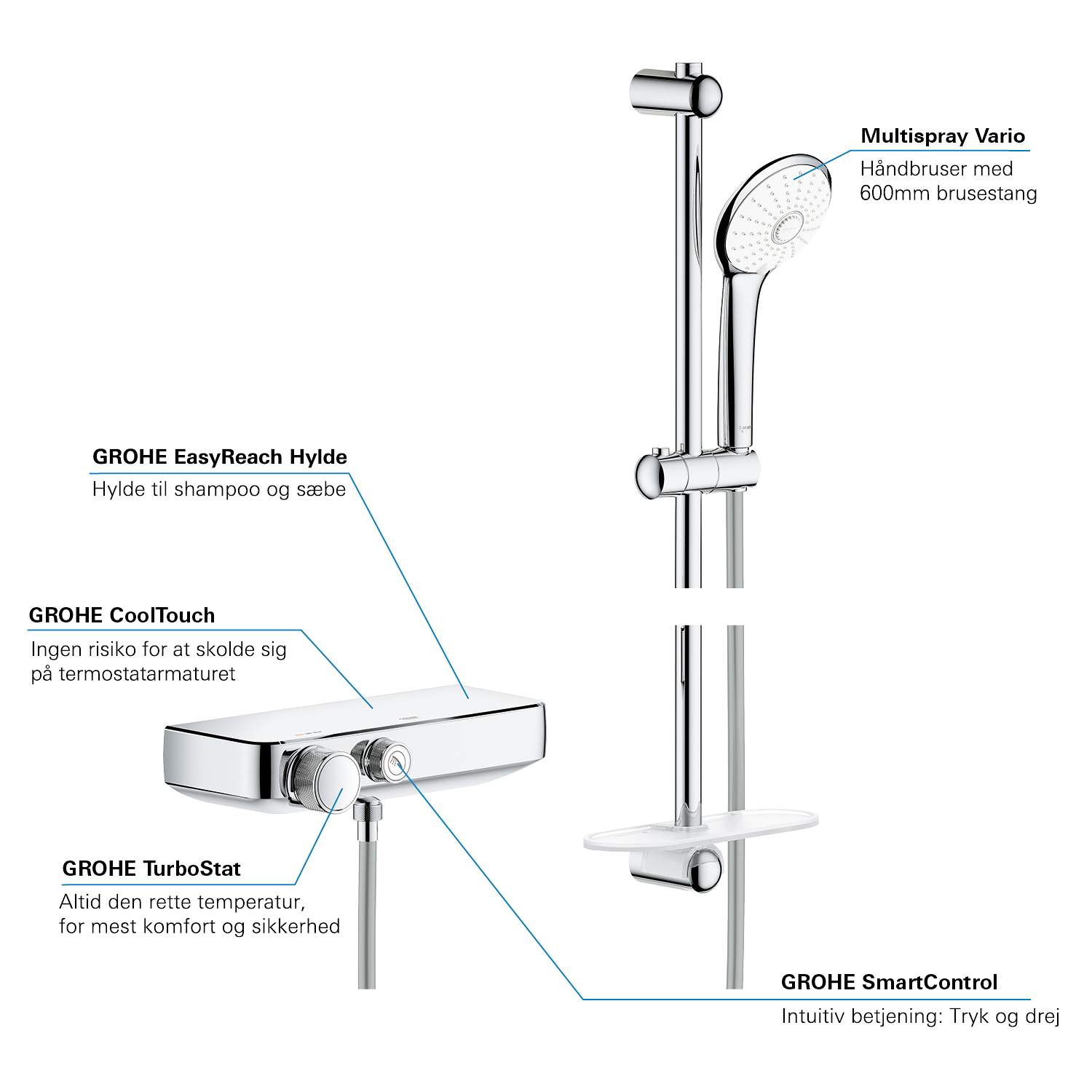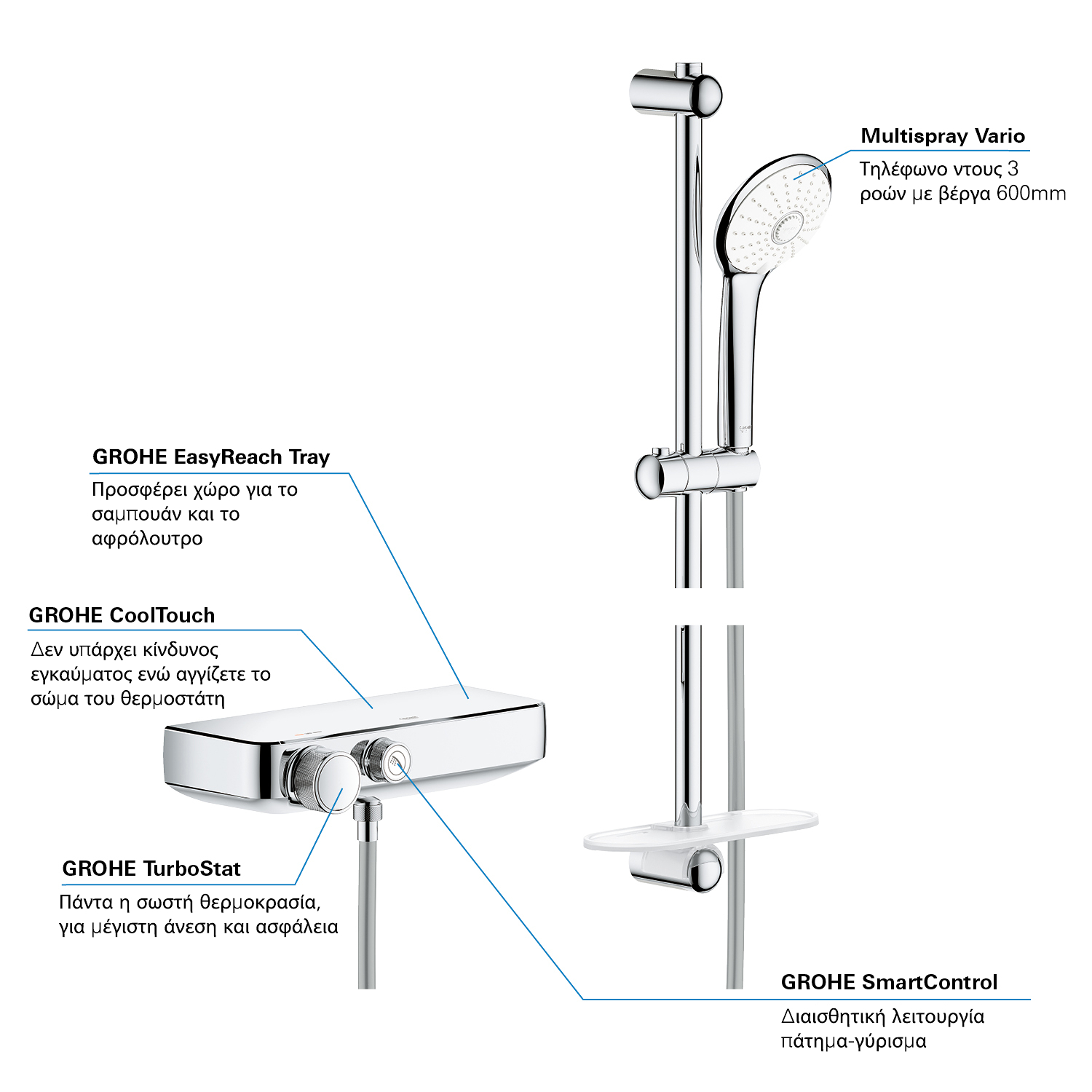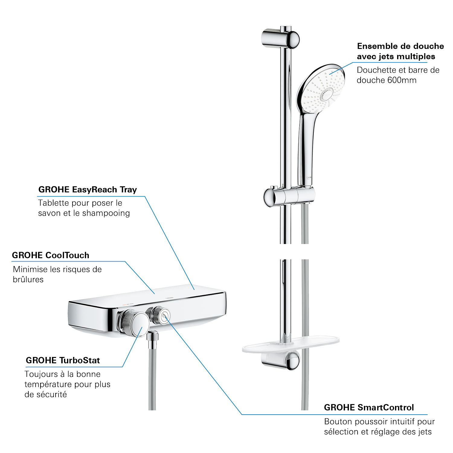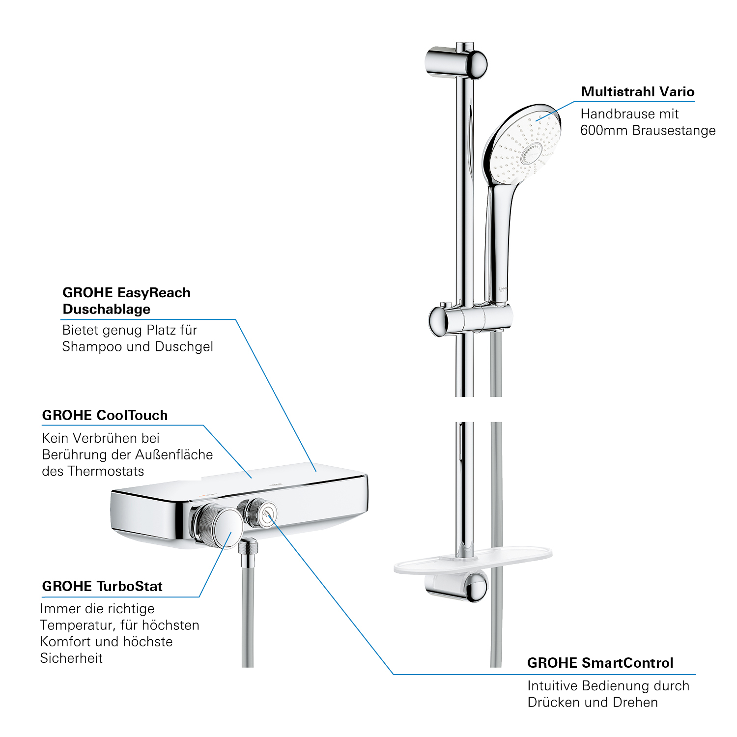 GROHE Grohtherm Smartcontrol Doucheset - thermostatische douchekraan - met glijstangset - 60cm - ronde handdouche - 3 straalsoorten - gladde doucheslang - met zeepschaal - chroom