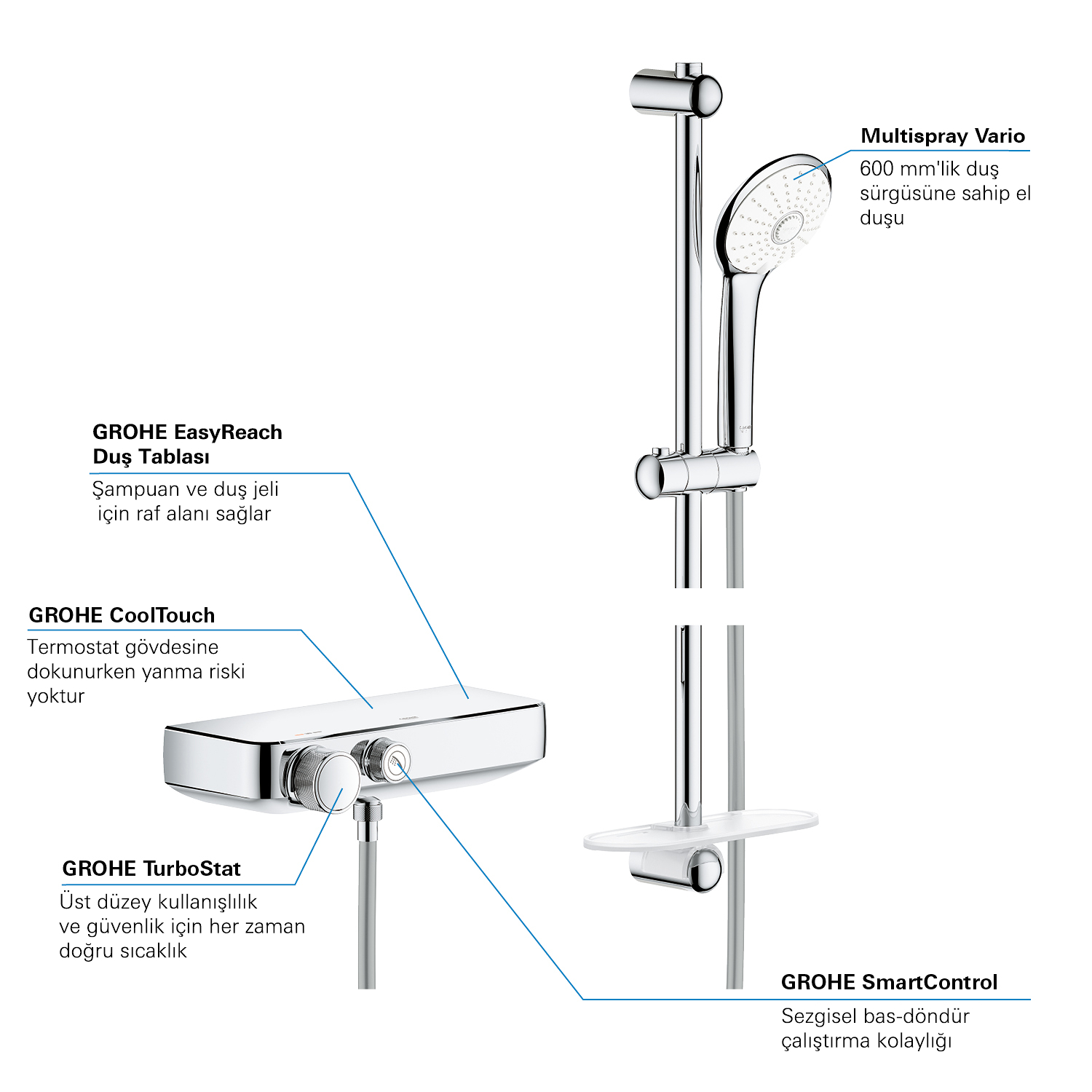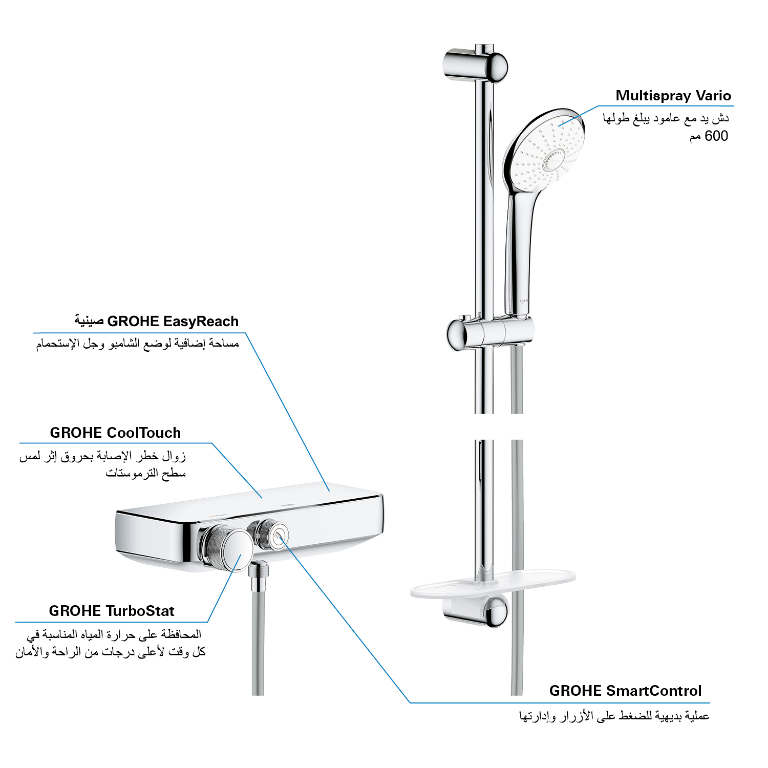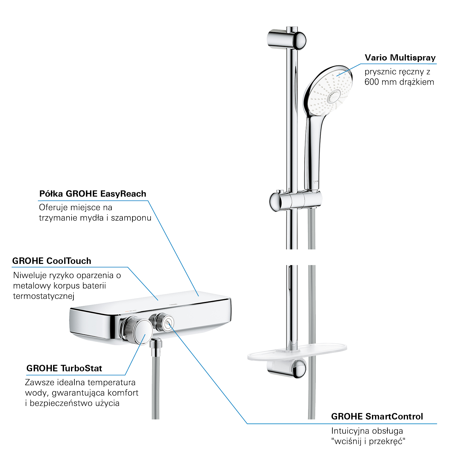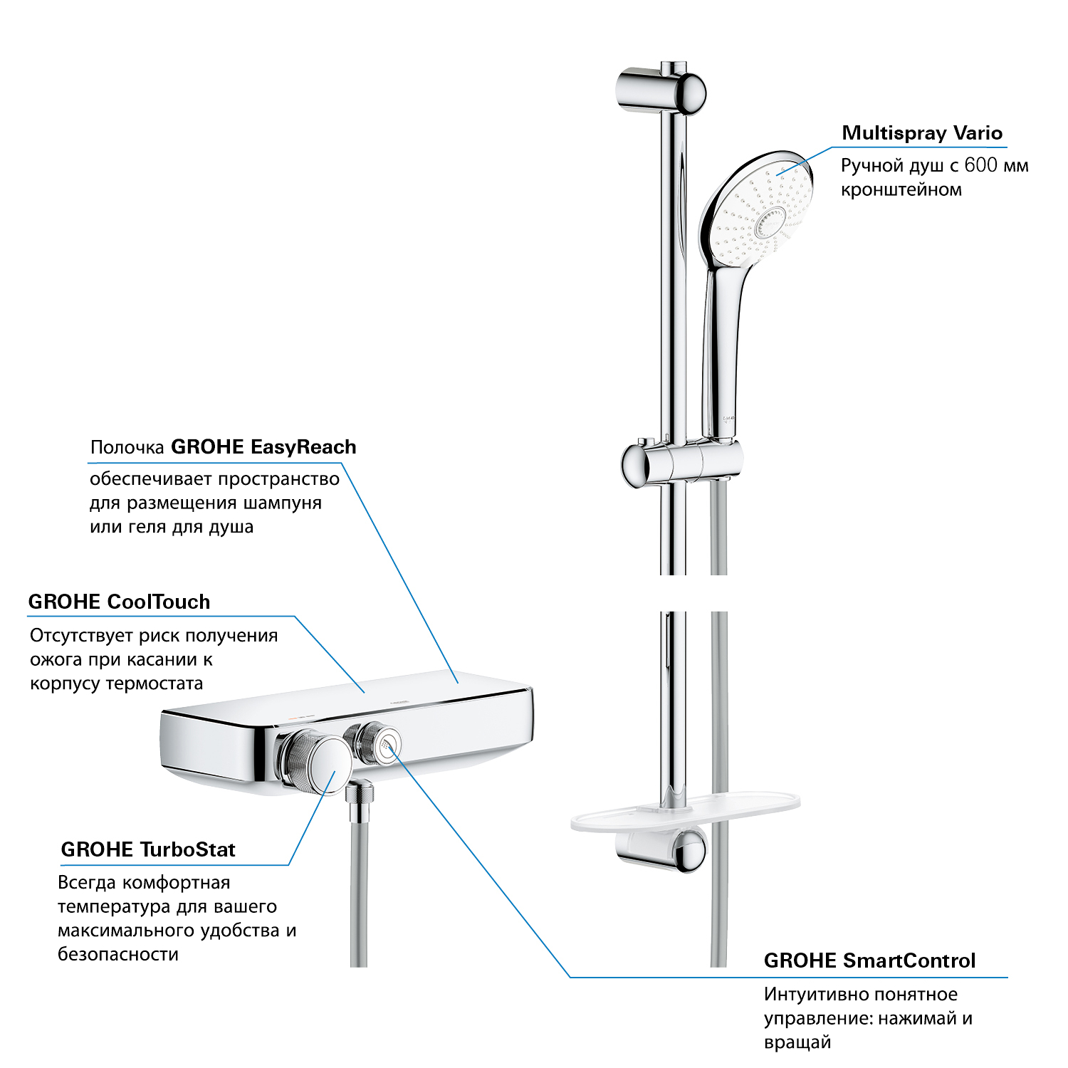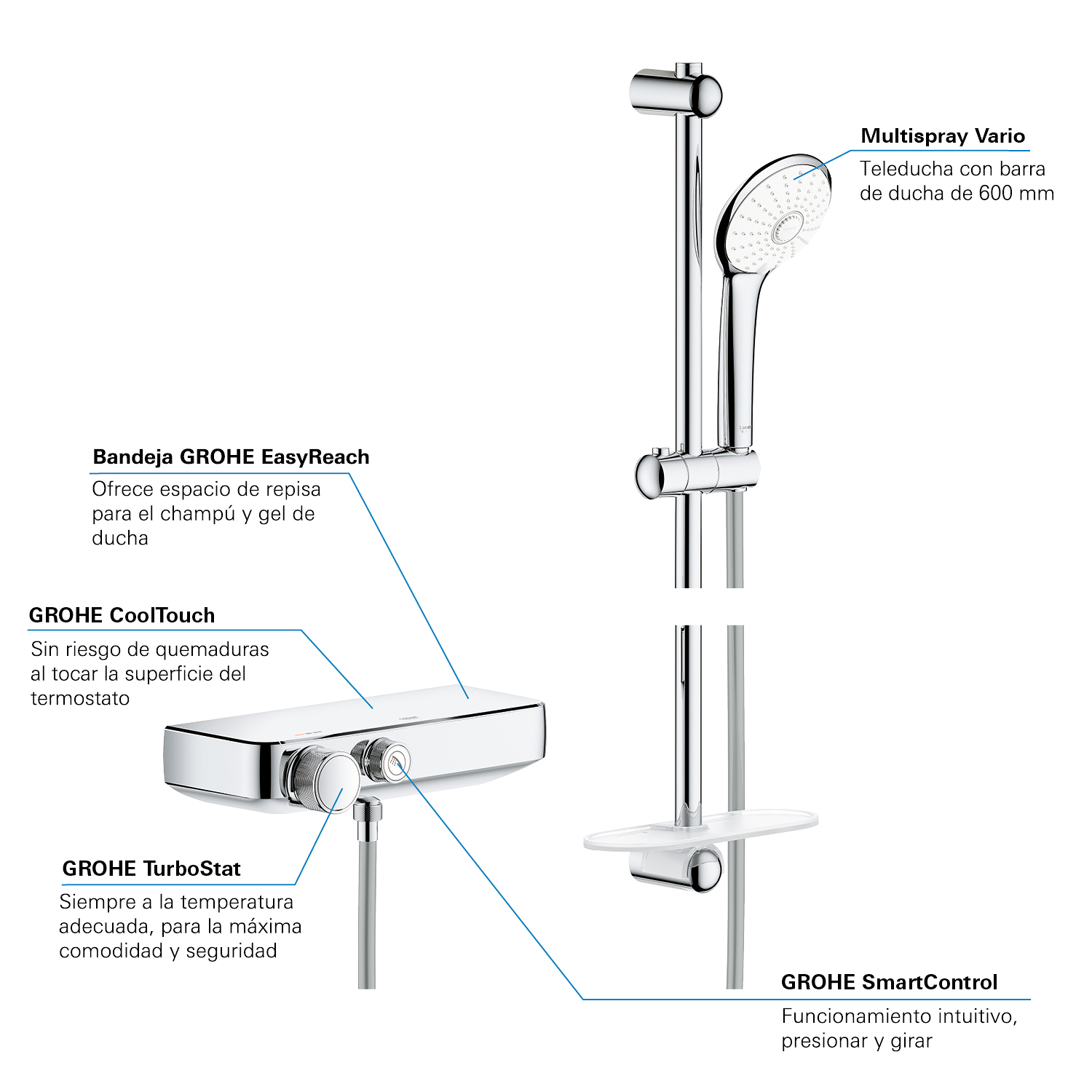 GROHE Grohtherm Smartcontrol Doucheset - thermostatische douchekraan - met glijstangset - 60cm - ronde handdouche - 3 straalsoorten - gladde doucheslang - met zeepschaal - chroom