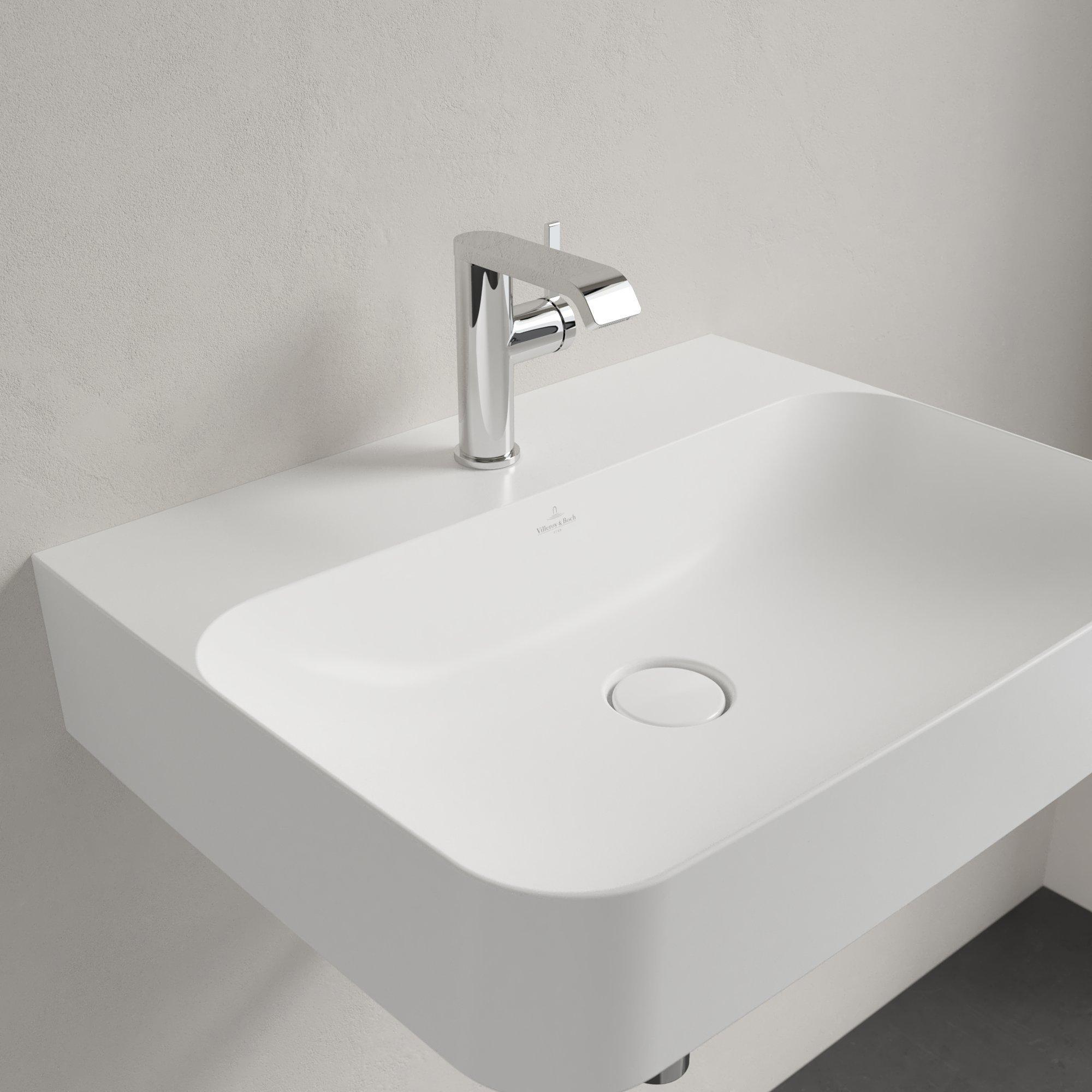 Villeroy & Boch Finion wastafel 1 kraangat 60x47cm Ceramic+ met verdekte overloop stone white SW209547