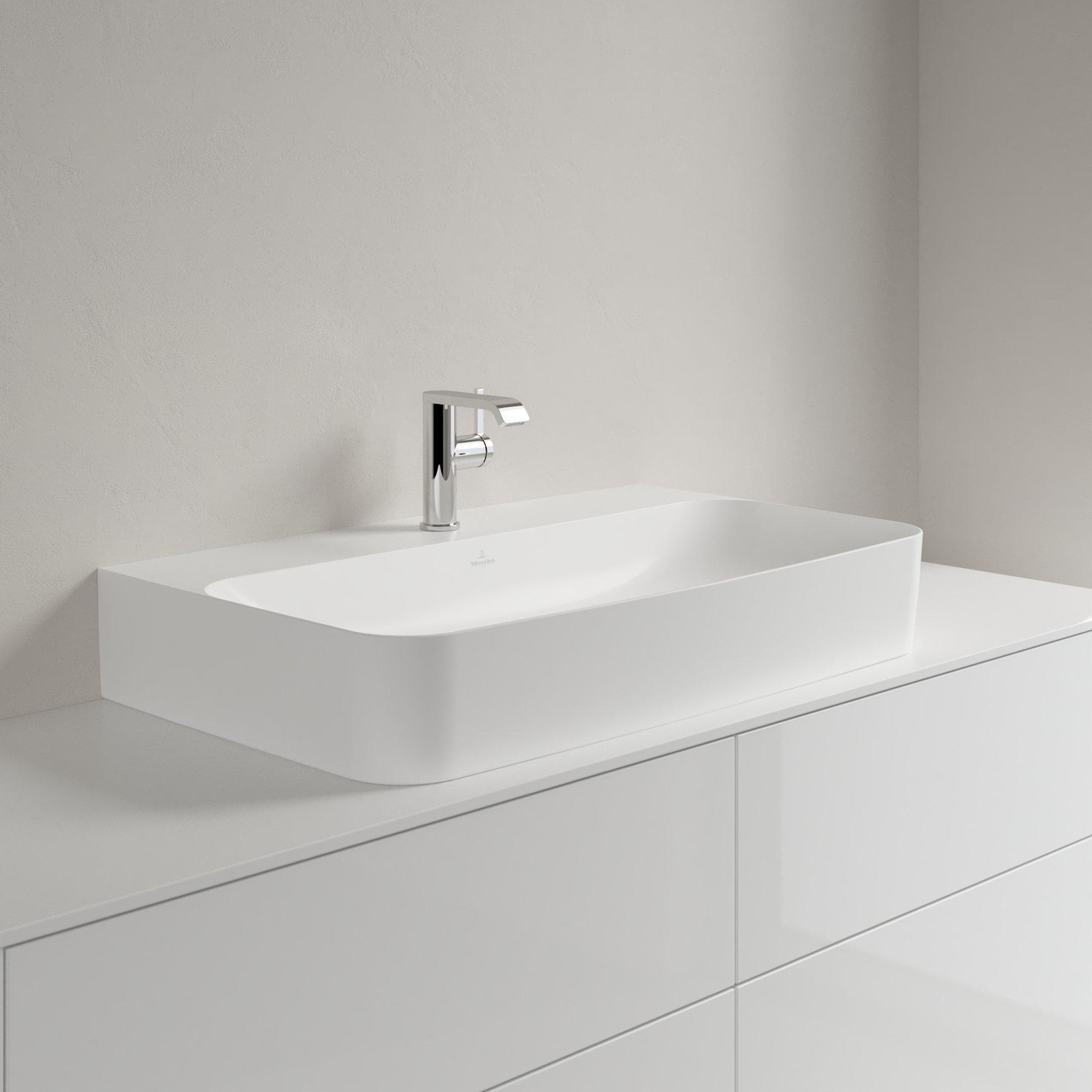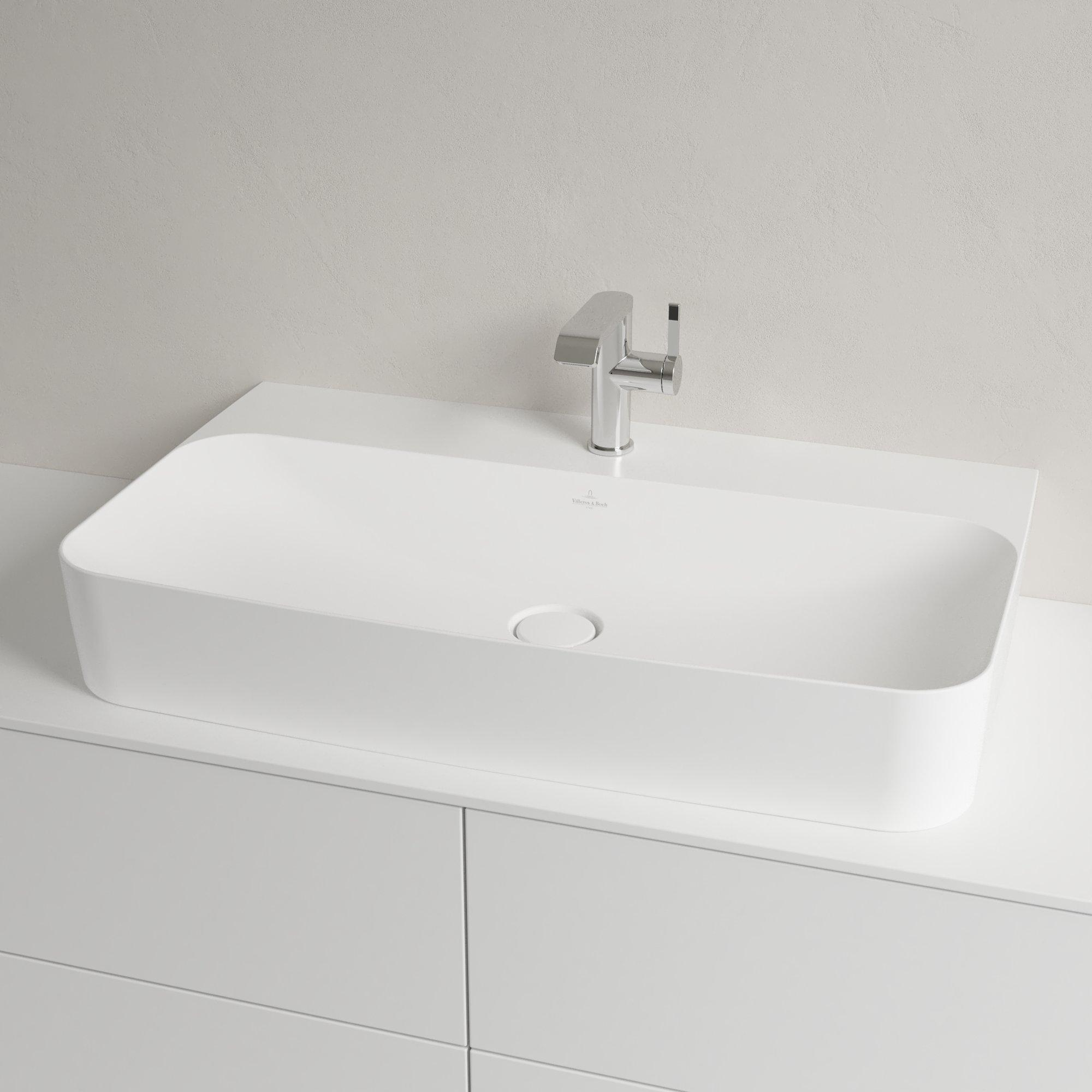 Villeroy & Boch Finion wastafel onderzijde geslepen 1 kraangat 80x47cm Ceramic+ met verdekte overloop stone white SW209556