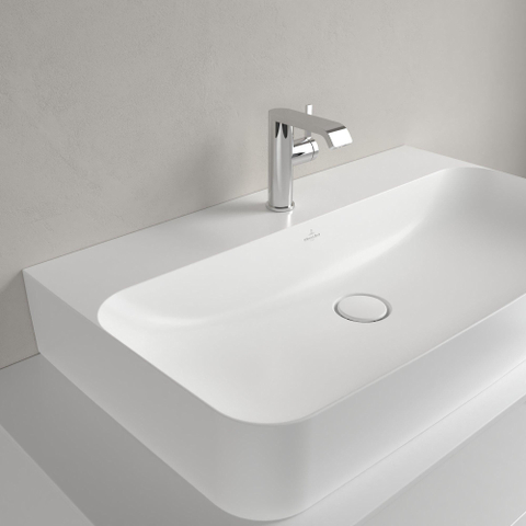 Villeroy & Boch Finion wastafel onderzijde geslepen 1 kraangat 80x47cm Ceramic+ met verdekte overloop stone white