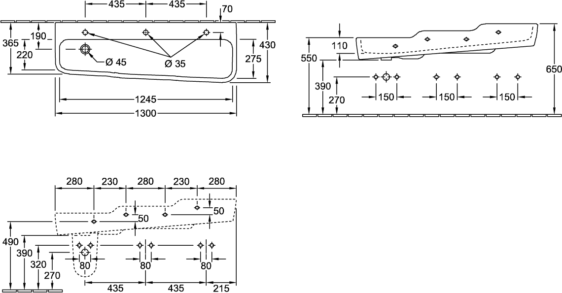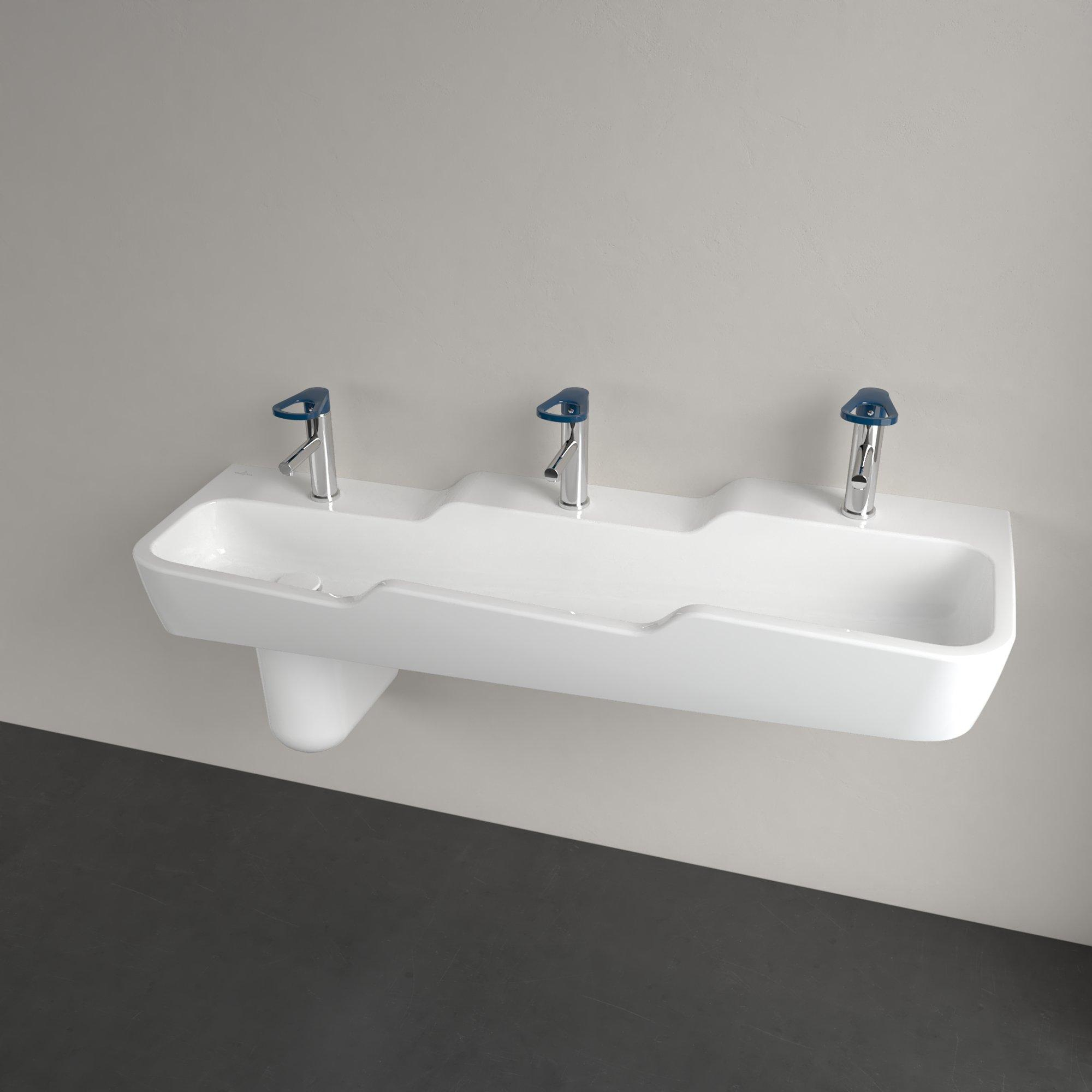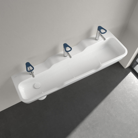 Villeroy & Boch O.novo Kids wastafel met 3x1 kraangat 130x43cm Ceramic+ zonder overloop wit