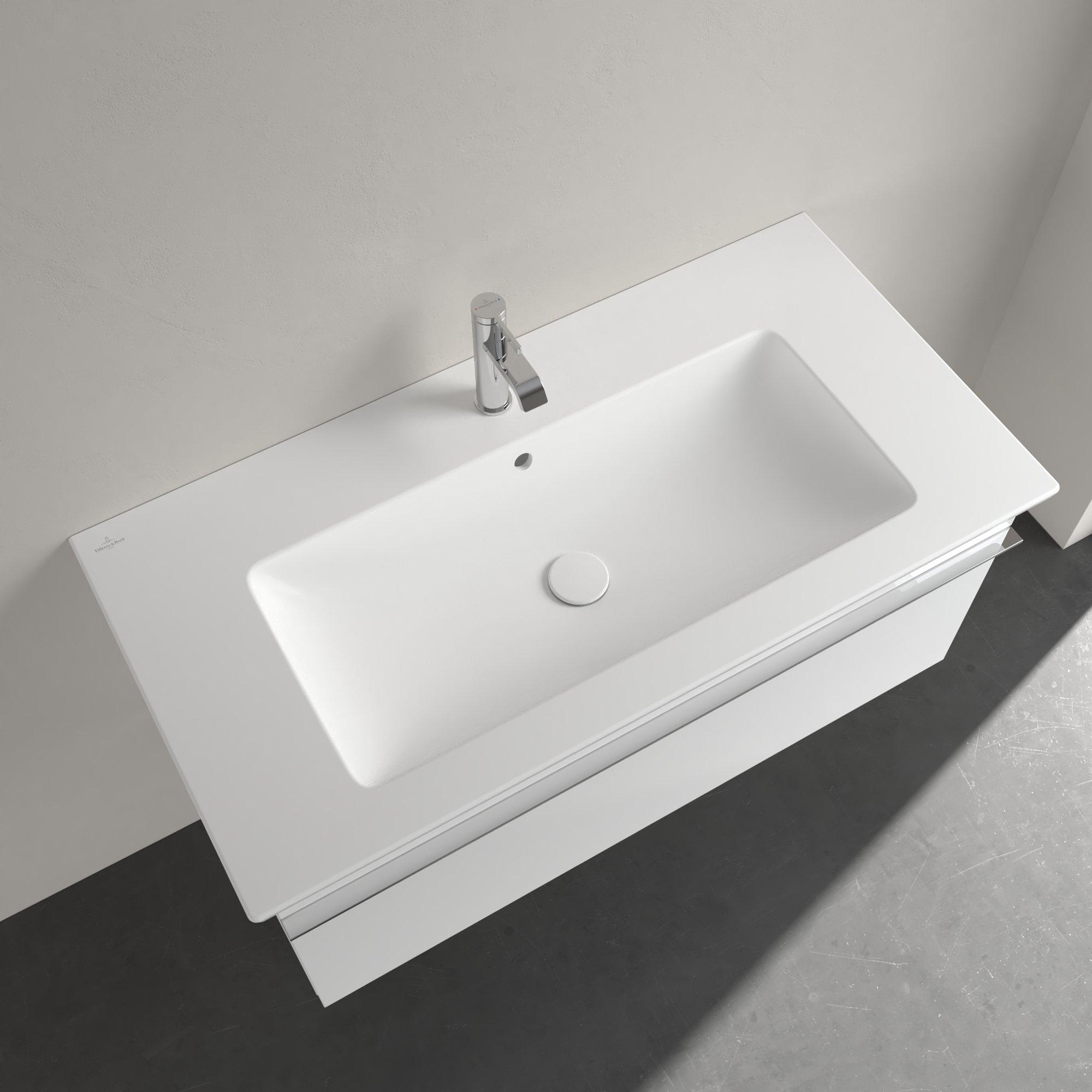 Villeroy & Boch Venticello meubelwastafel met wasbak midden 1 kraangat doorgestoken 100x50cm (geschikt voor 3 kr.gaten) met overloop Ceramic+ stone white