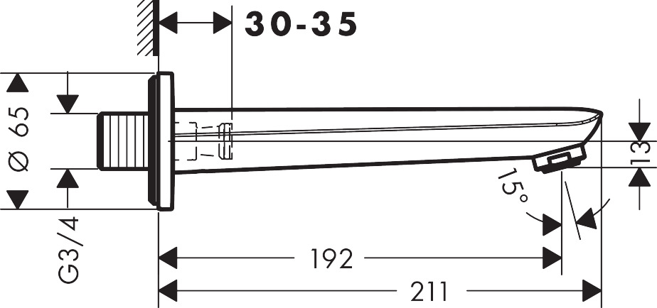 Met modern design en kwaliteit van hansgrohe brengt de Novus baduitloop meer badplezier aan de badrand. Door de royale doorstroomhoeveelheid van 20 l/min (bij 3 bar) kan met de baduitloop voor de wandmontage het bad snel worden gevuld.
