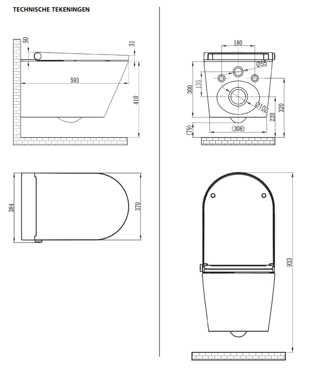 - Bouwwijze: wandcloset