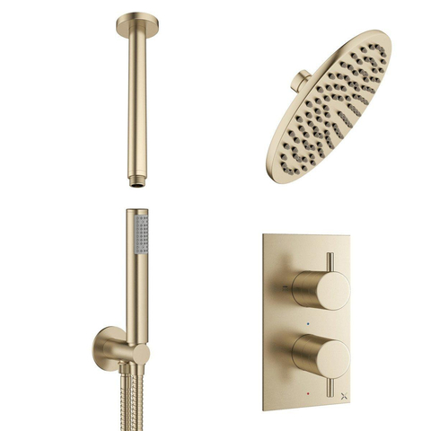 De Crosswater MPRO Regendoucheset straalt elegantie uit met zijn slanke ontwerp en geborsteld messing afwerking. Het minimalistische design past perfect in moderne badkamers en voegt een vleugje luxe toe aan de ruimte. Met de 20cm hoofddouche en plafondarm creëer je een spa-achtige sfeer in je eigen badkamer, waar je kunt ontspannen en genieten van een verfrissende douche.
