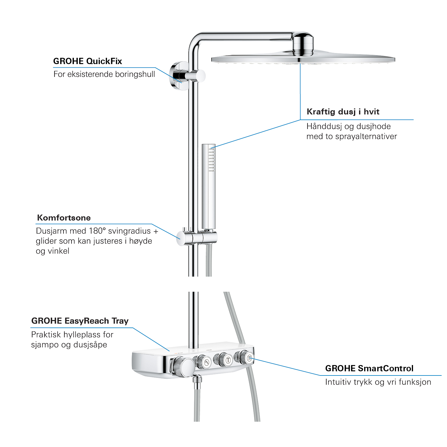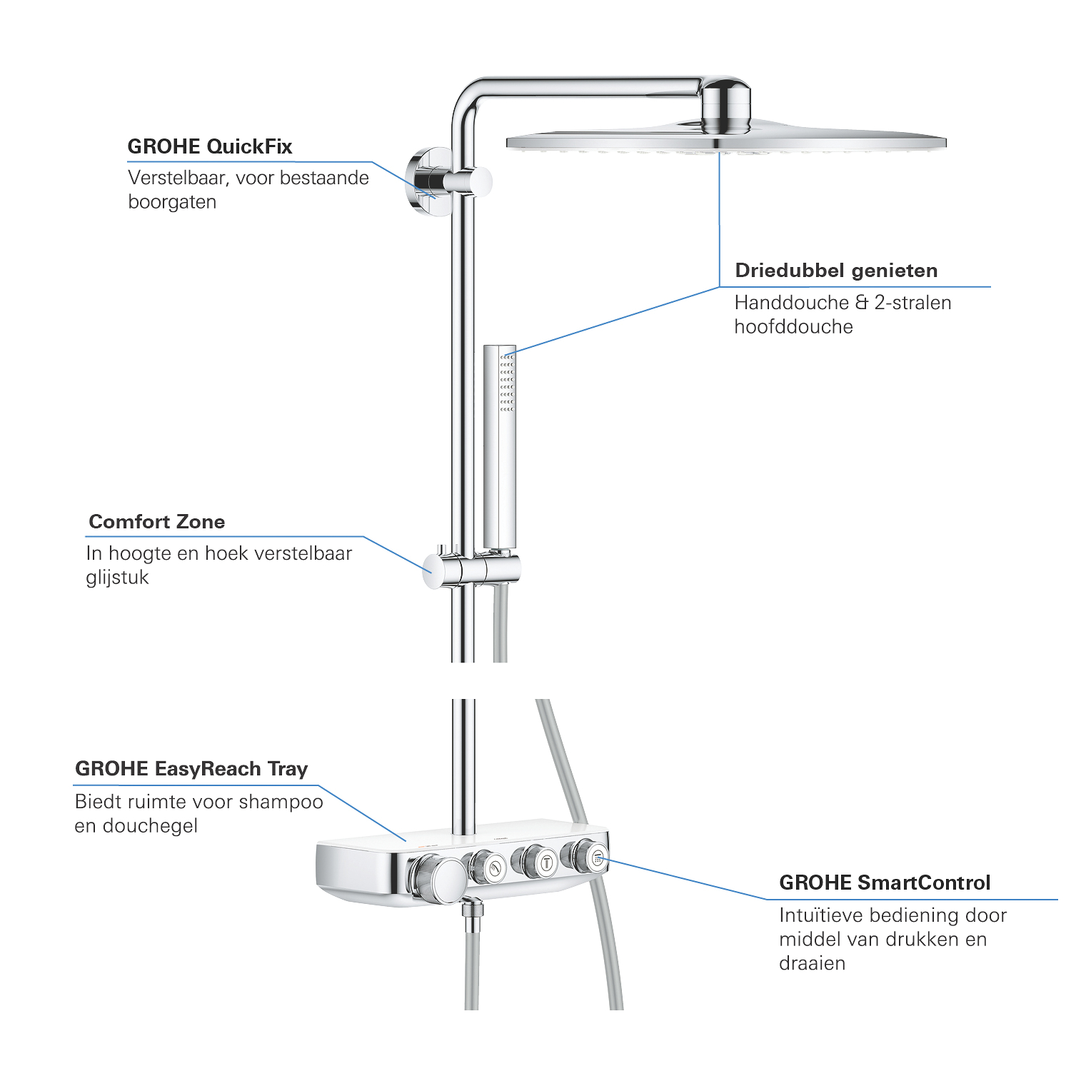 geïntegreerde GROHE EasyReach douchetray