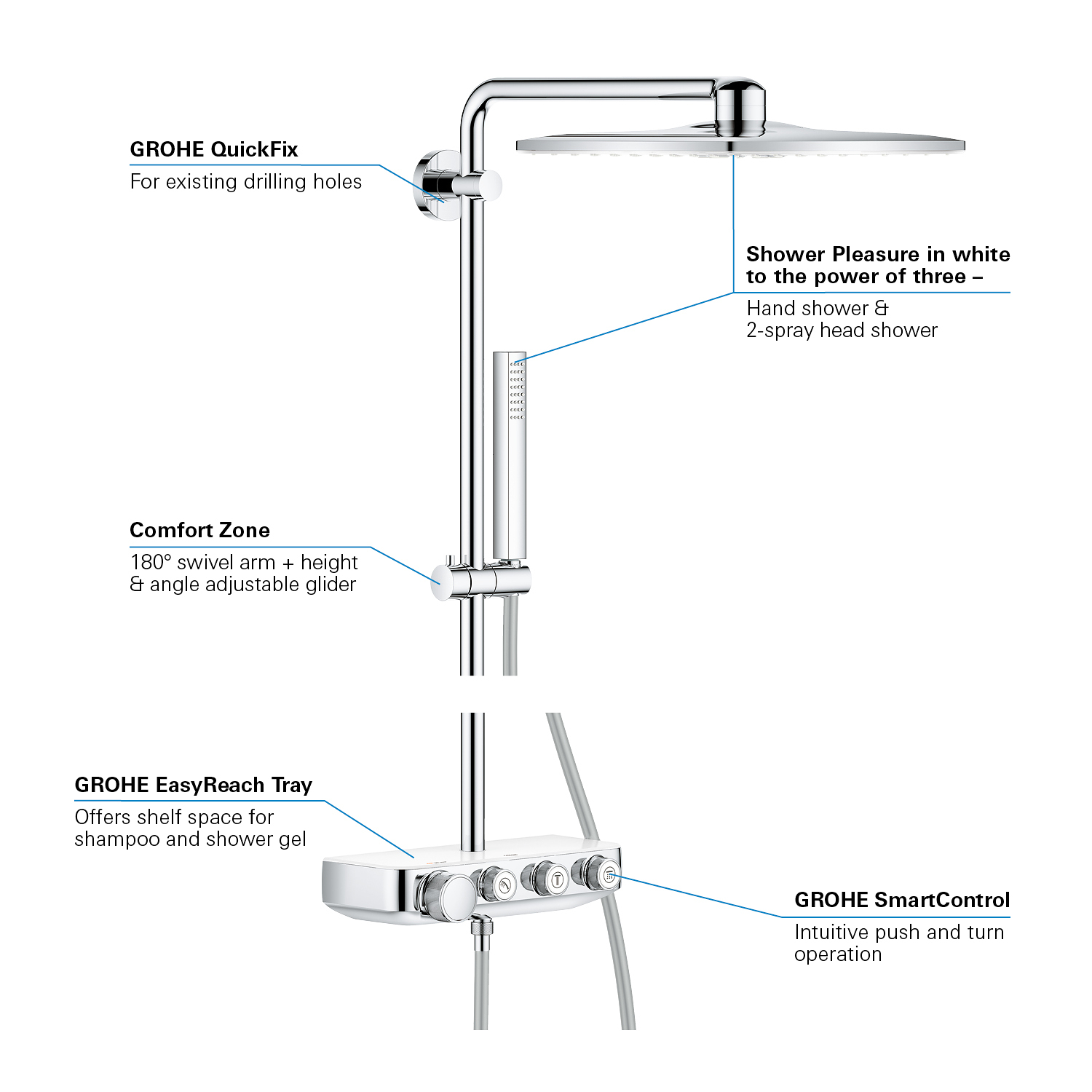 GROHE Euphoria SmartControl 310 Cube Douchesysteem - geniet van chique stijl, comfort en intuïtieve druk/draaibediening